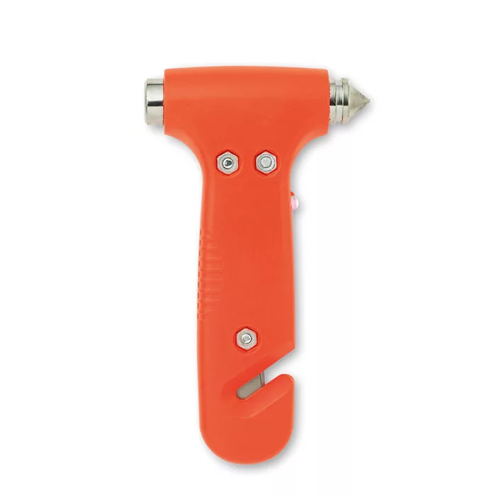3 az 1-ben ABS kalapács vészhelyzetekre. Biztonsági öv vágóval és LED fénnyel.