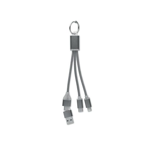 Kulcstartó töltőkábellel. 2 az 1-ben C-típusú, USB-A és mikro USB-B bemenettel és C-típusú kimenettel.
