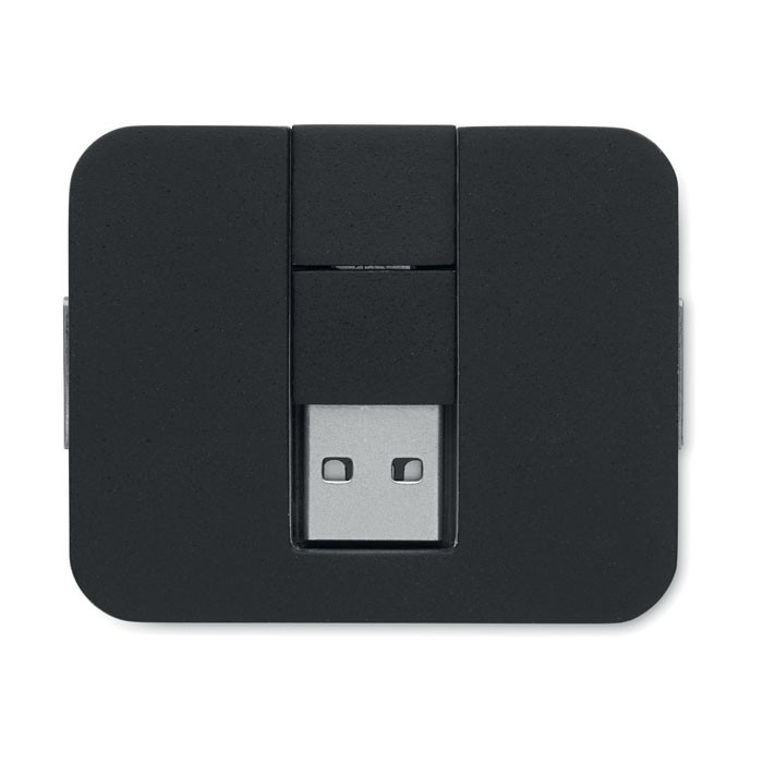 4 portos 2.0 USB hub elosztó ABS-ből. Kimenet: 2 x USB-A és 2 x C-típusú. Bemenet: USB-A és C-típusú.