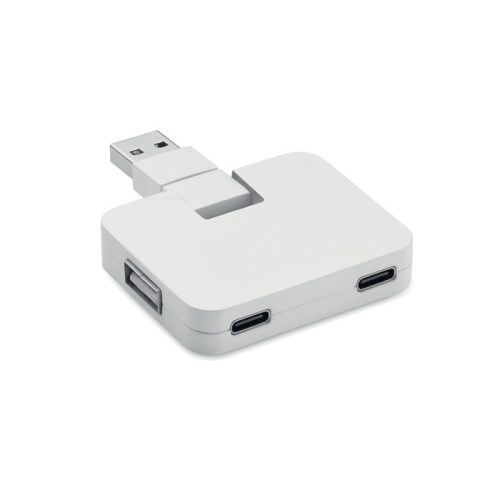 4 portos 2.0 USB hub elosztó ABS-ből. Kimenet: 2 x USB-A és 2 x C-típusú. Bemenet: USB-A és C-típusú.