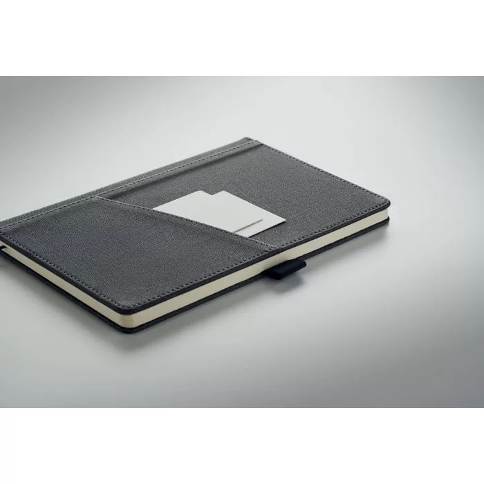 A5 jegyzetfüzet PU keménytáblás borítóval, elülső telefontartó zsebbel és tolltartó hurokkal. Cérnafűzött. 160 vonalas oldal (80 lap) újrahasznosított papírból. Színben illeszkedő könyvjelző szalag.