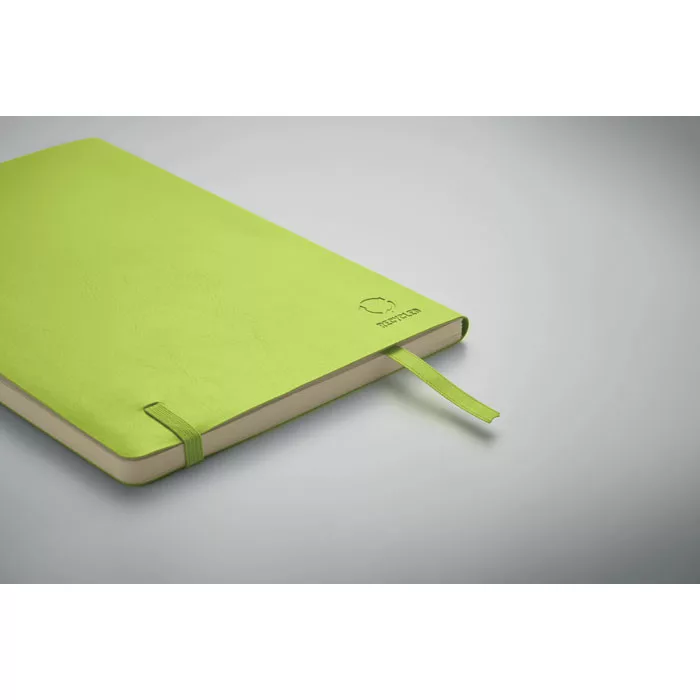A5 jegyzetfüzet puha, újrahasznosított PU borítóval (81% újrahasznosított poliészter és 19% PU).