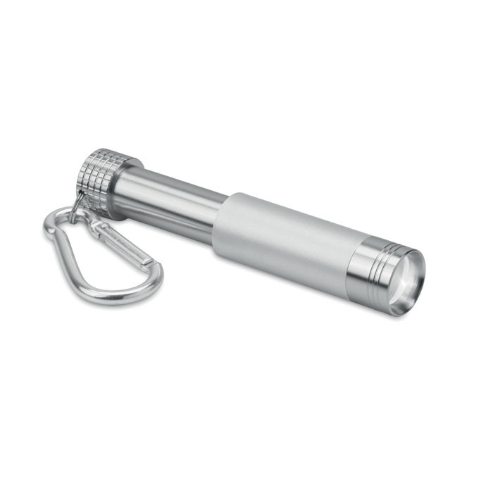 Mini kulcstartó alumíniumból és ABS műanyagból. Gravírozás esetén a céglogó a bekapcsolt lámpán átviláglik. A működéshez szükséges 4 db LR44 gombelemmel szállítjuk.
