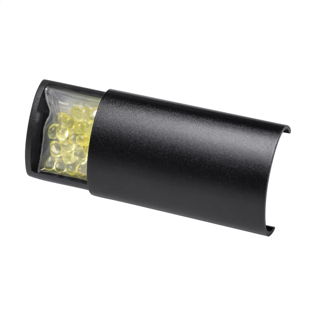Szellőzőrácsra rögzíthető autóillatosító citrom illattal.