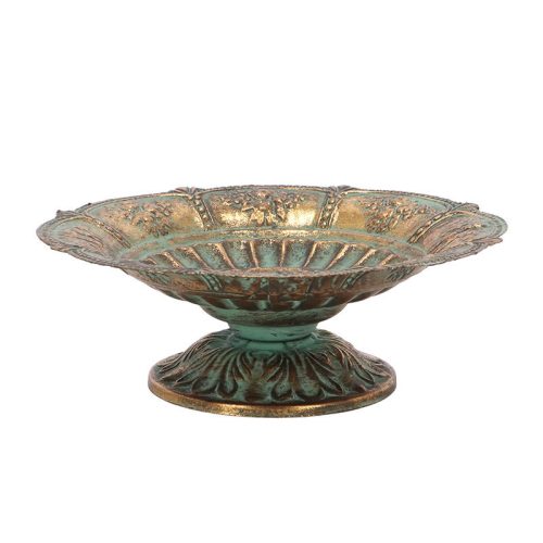 A 23 cm átmérőjű tál kompakt méretének köszönhetően kevés helyet foglal a polcokon, könnyen kihelyezhető, és látványos megjelenése miatt gyorsan magára vonja a vásárlók figyelmét. Prémium minőségű, időjárásálló, öregített hatású fémből készült, így kültéri és beltéri használatra egyaránt ajánlható – szélesebb vásárlói réteget szólít meg. Masszív anyaghasználat garantálja a tartósságot, a patinás, antik megjelenés pedig a vintage és klasszikus stílus kedvelőinek is vonzó.