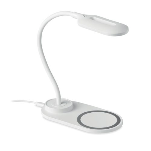 ABS műanyagból készült asztali lámpa 10 LED fénnyel és 10W-os vezeték nélküli töltővel. Érintőszenzoros. Teljesítmény: DC 9V/1.1A (10W) a gyorstöltéshez.