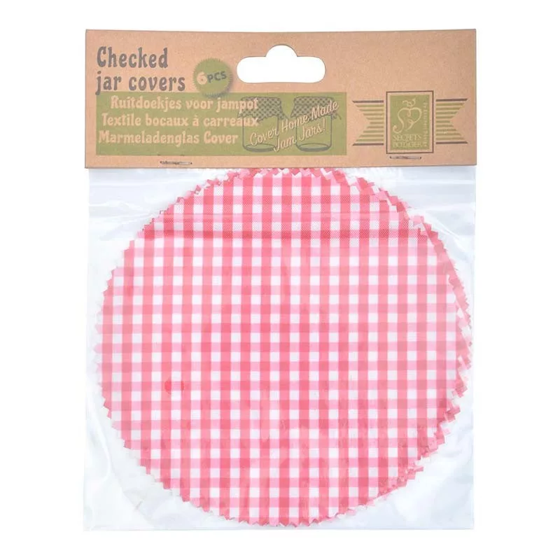Piros kockás mintás retró, befőttesüveg tető takaró. Régies és egyben divatos is, hiszen nagymama lekvárainak hangulatát idézi elő minden háztartásban. A hagyományos csavaros tetőre könnyen felhelyezhető, stílusossá varázsolja üvegeinket. Ha ajándékba viszünk a finomságokból, akkor ezzel a fedővel dekoratívvá tehetjük az üvegeket. A szett 6 darabot tartalmaz, bármilyen méretű üvegre passzol.