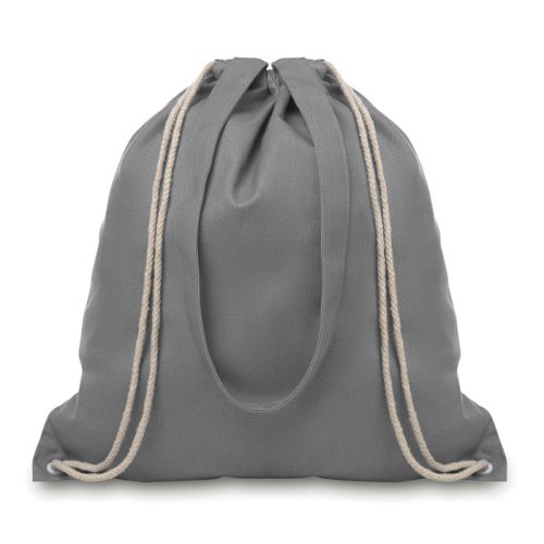 Pamutból készült zsák húzózsinórokkal és hosszú fülekkel.