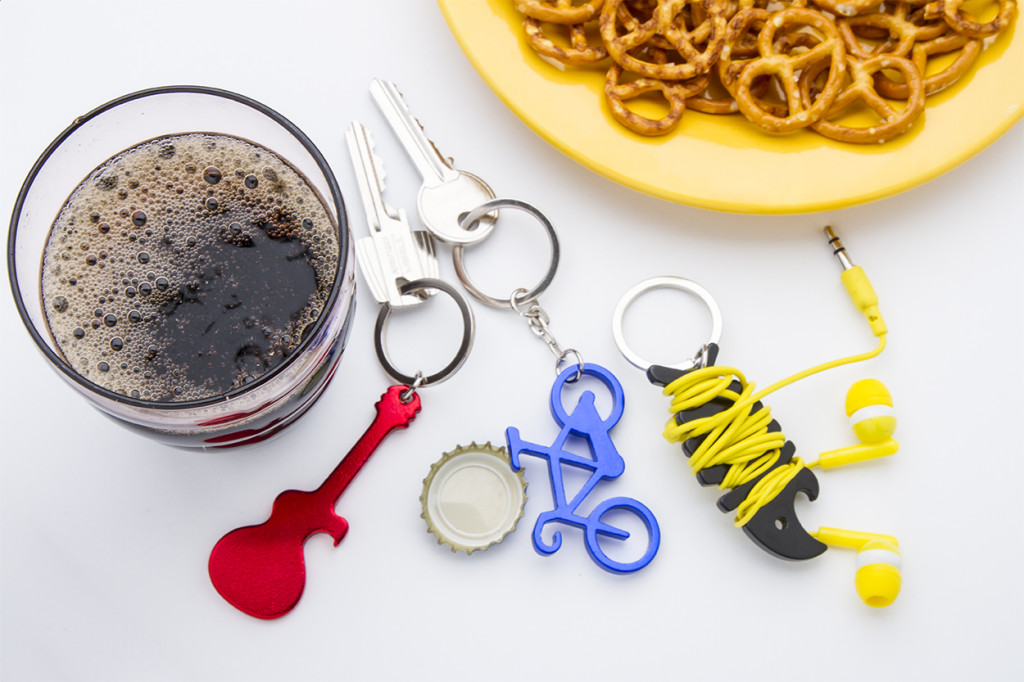 Bicikli formájú alumínium kulcstartó, sörnyitó funkcióval.