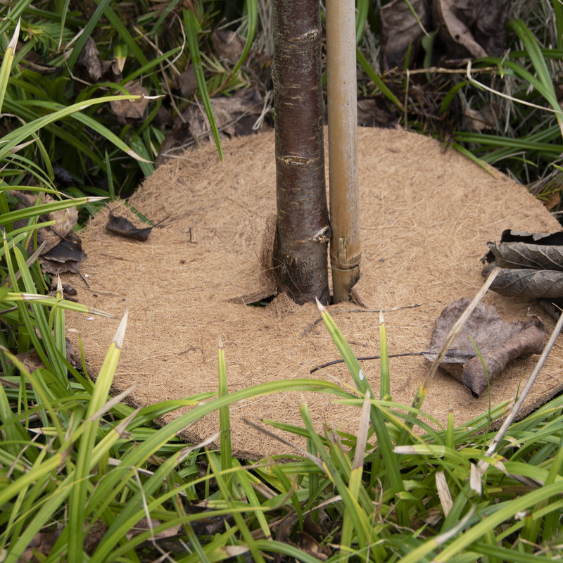 Biológiailag lebomló kókuszrost fagyvédő korong, 28 cm átmérővel, M méretben. Környezetbarát megoldás a frissen ültetett facsemeték, bokrok gyökérvédelmére, a téli fagyvédelemre - és még az öntözővízzel is takarékoskodhatunk nyáron! A korong télen és nyáron is megfelelő légáteresztést biztosít a gyökérnyak körül, ugyanakkkor védi a sérülésektől, kiszáradástól, fagytól. A kókuszmulcs szőnyegnek köszönhetően a talaj tovább megtartja a nedvességet öntözés után a forró nyári napokon is, így a növény nem szárad ki. Elfelejtheted a gazolást is, hiszen a koronggal borított talajon a gyomnövények nem tudnak kikelni, és elszívni a tápanyagot a növénytől. Telepítése gyerekjáték: egyszerűen helyezd a korongot kissé megnyitva a fa törzse köré. A közepén lévő lyuk melletti perforáció miatt nem szükséges a korongot folyamatosan méretre igazítani ahogy a növény törzse vastagszik. A kókuszrost lebomlását követően javítja a talaj minőségét és szerkezetét. Természetes megjelenésének köszönhetően dekoratív és fenntartható kellék minden stílusú kertben!