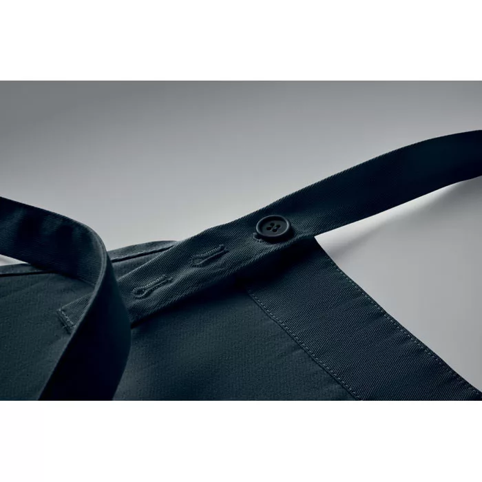 Állítható teljes kötény 1 nagy elülső, 2 rekeszre osztott zsebbel, 240 g/m² biopamutból. Gombbal állítható hosszúságú nyakpánttal. Ez a termék OEKO-TEX® STANDARD 100 tanúsítvánnyal rendelkezik.