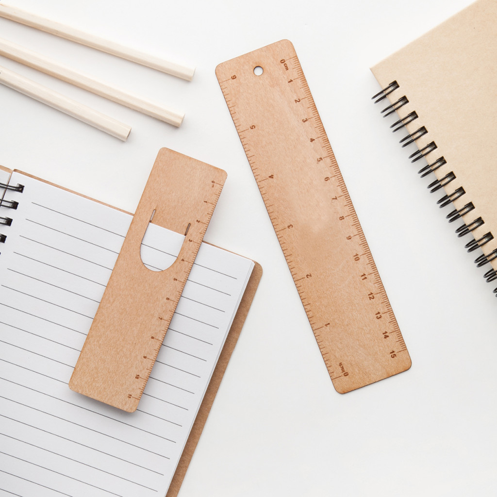 Fából készült könyvjelző 11 cm hosszú vonalzóval.