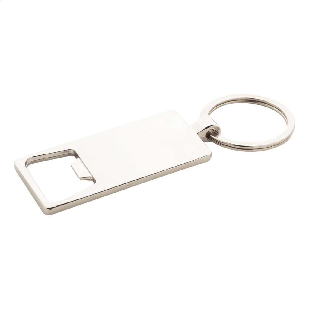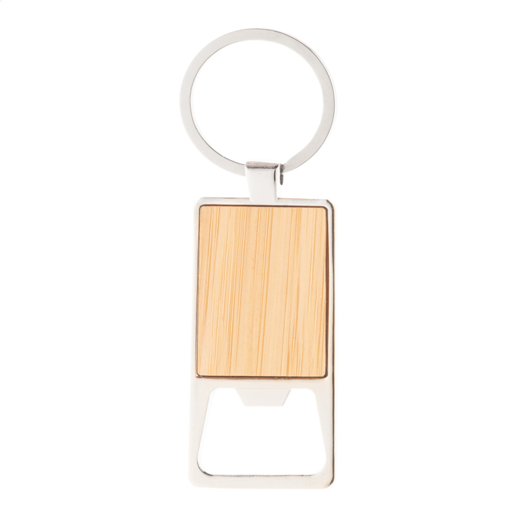 Fém kulcstartó bambusz betéttel és üvegnyitóval.