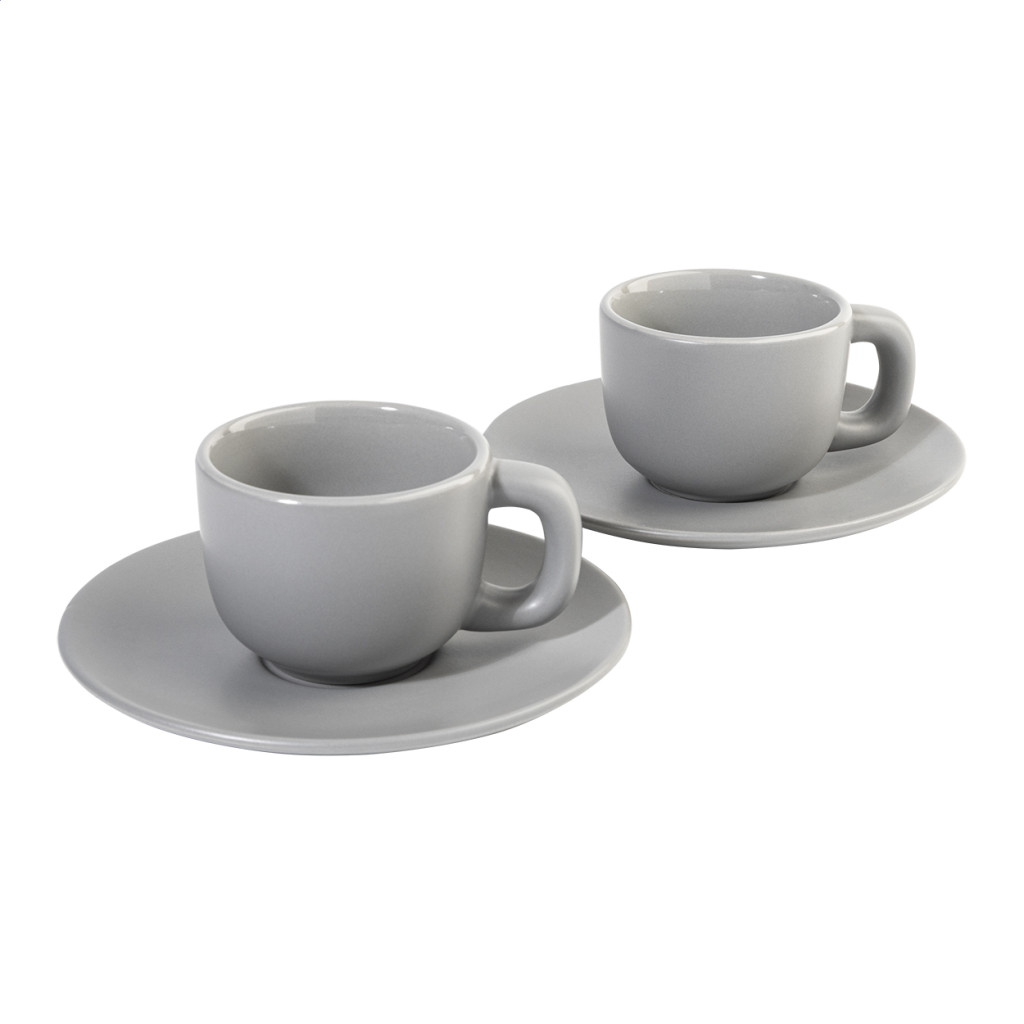 Magas minőségű, kerámia espresso csésze szett 2 csészével és csészealjakkal. Kívül matt, belül fényes felülettel. 85 ml. Kraft papír dobozban.