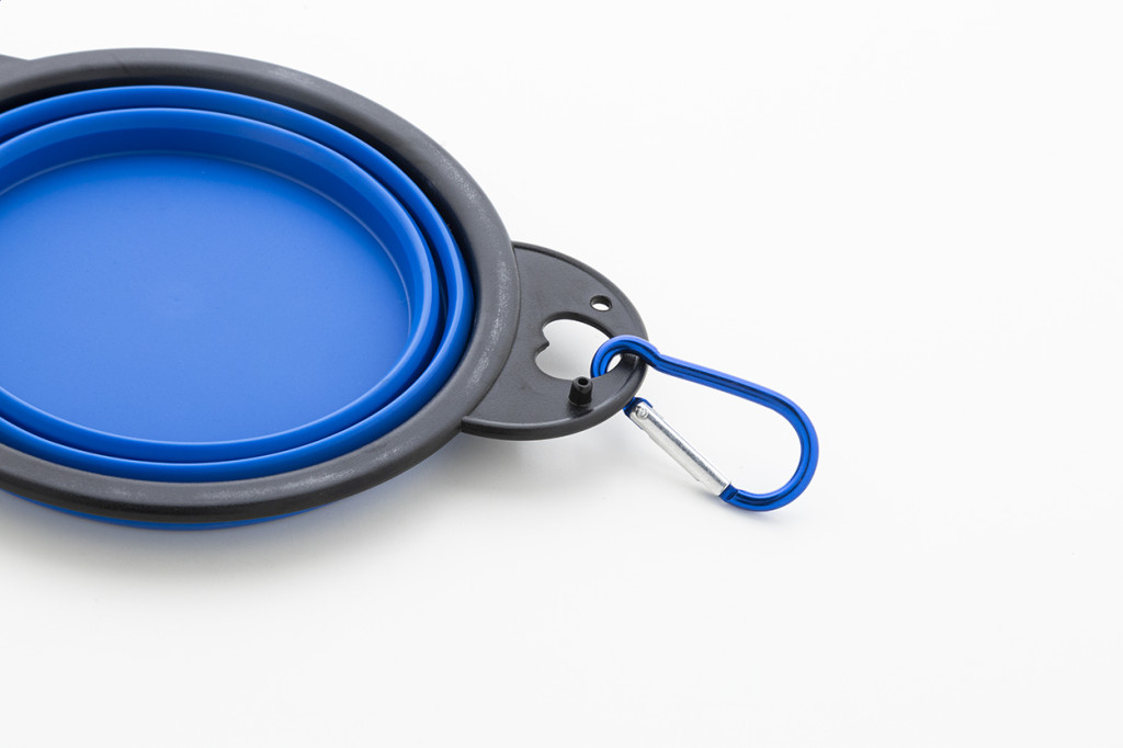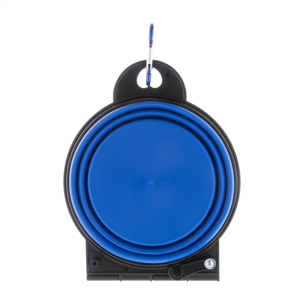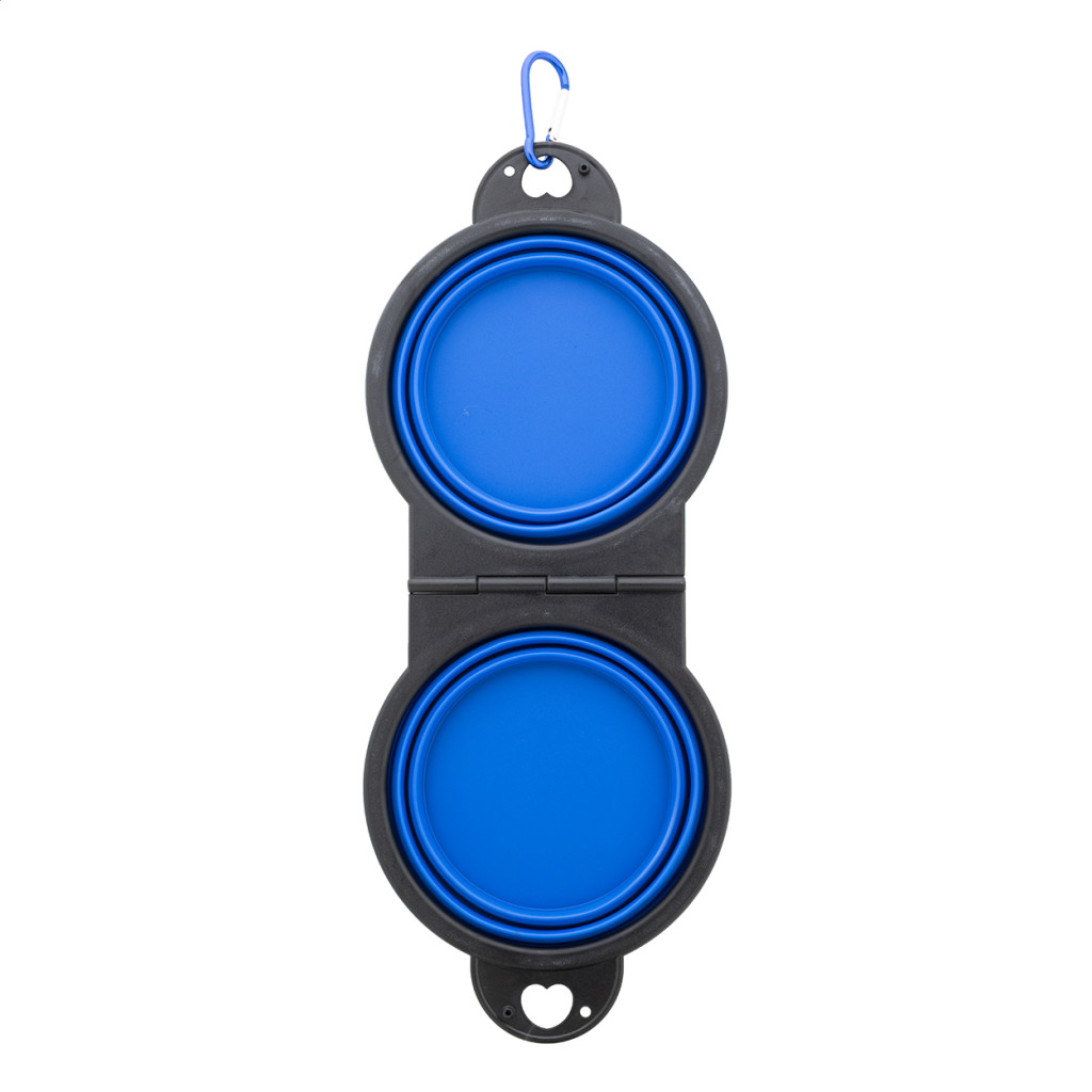 Összecsukható kutyatál TPE-ből, két 450 ml-es rekesszel és hozzá illő színű alumínium karabinerrel.