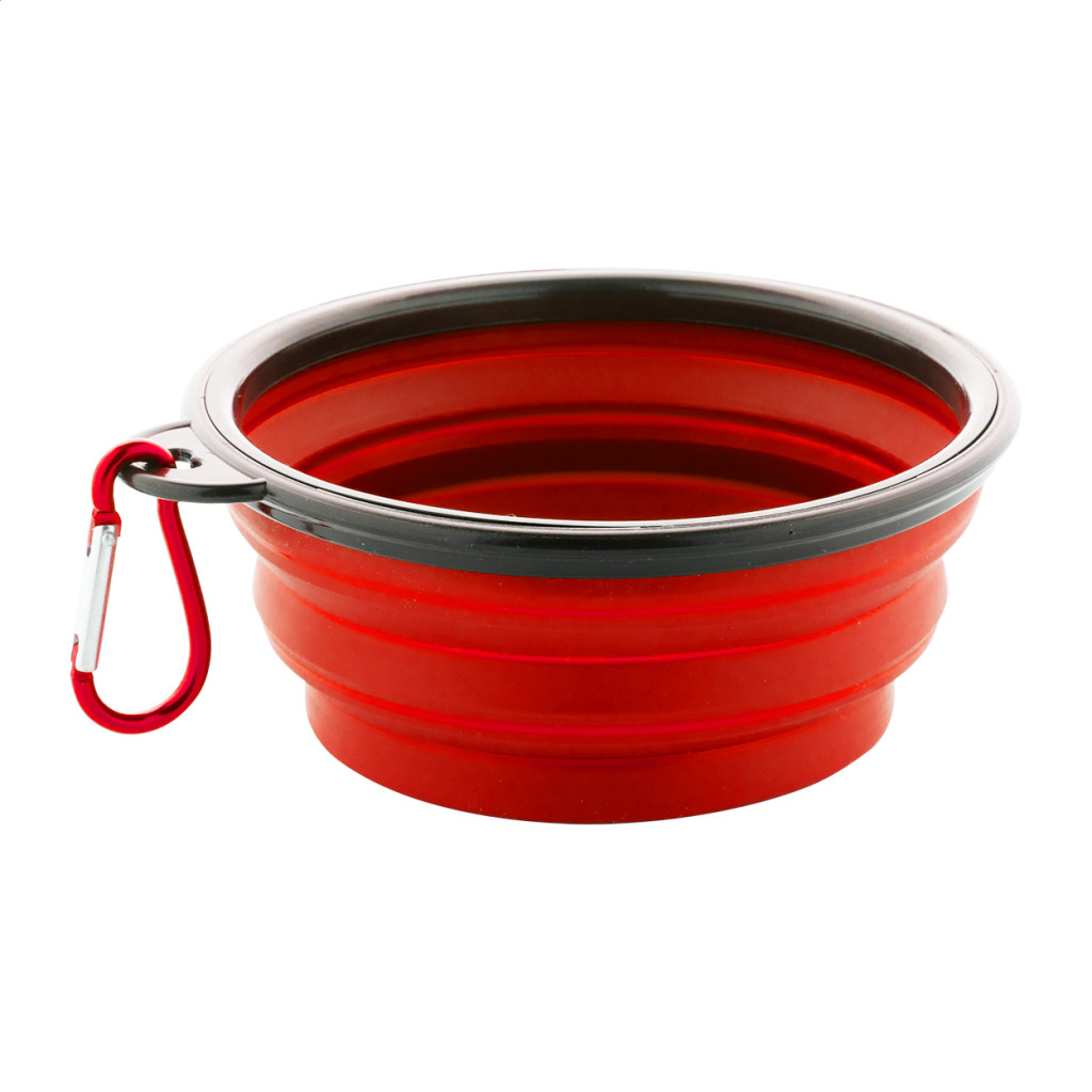 Összecsukható kutyatál TPR anyagból, hozzáillő színű karabinerrel, 450 ml.