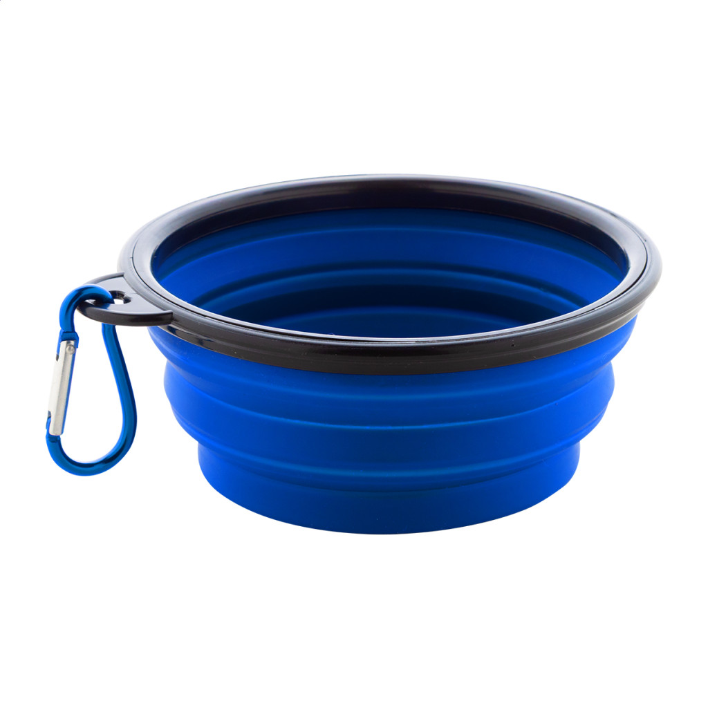 Összecsukható kutyatál TPR anyagból, hozzáillő színű karabinerrel, 450 ml.