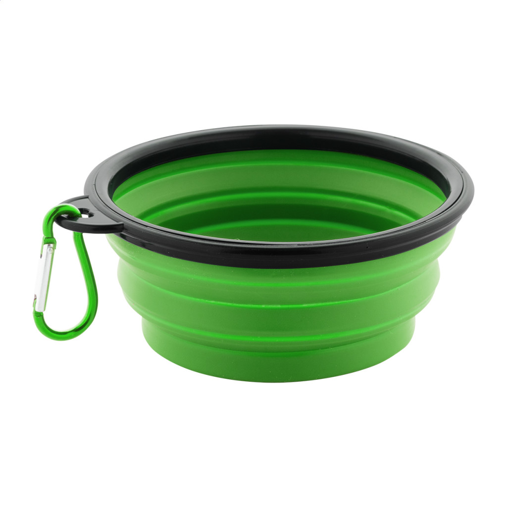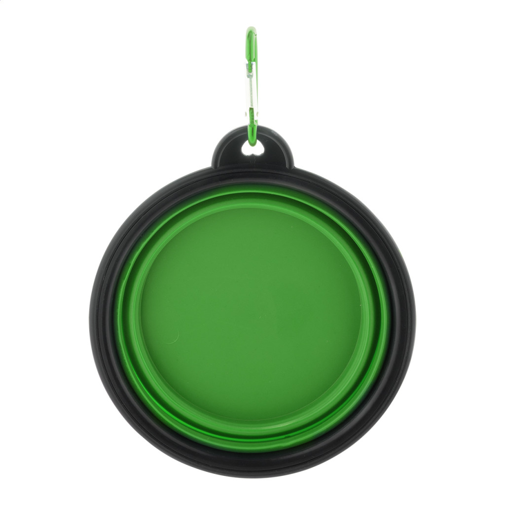 Összecsukható kutyatál TPR anyagból, hozzáillő színű karabinerrel, 450 ml.