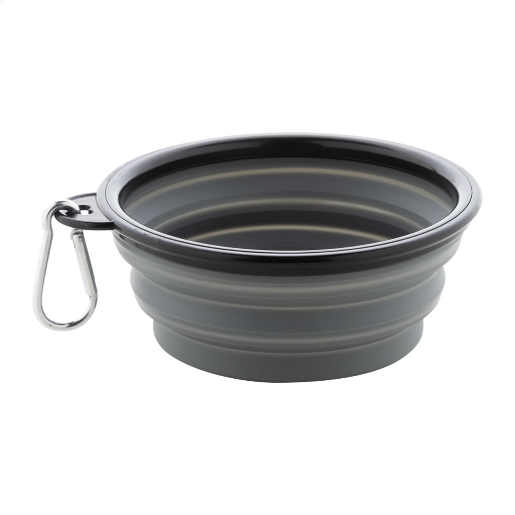Összecsukható kutyatál TPR anyagból, hozzáillő színű karabinerrel, 450 ml.