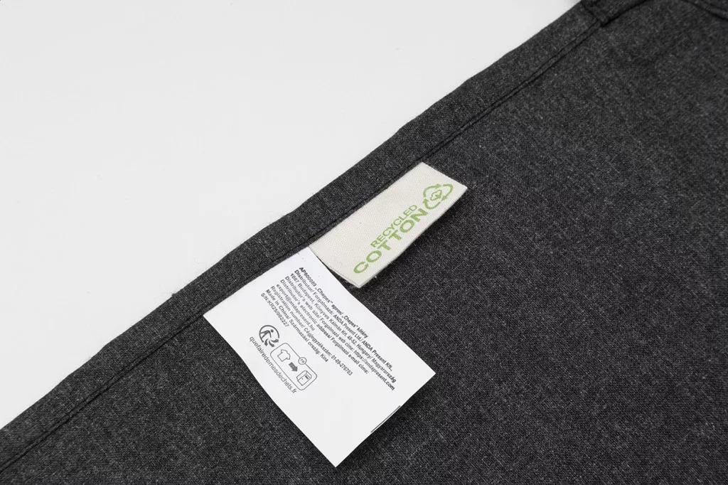 70% újrahasznosított pamutból és 30% RPET poliészterből készült konyhai kötény, 180 g/m².