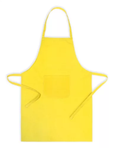 Színes kötény elülső zsebbel. 35% pamut, 65% poliészter.