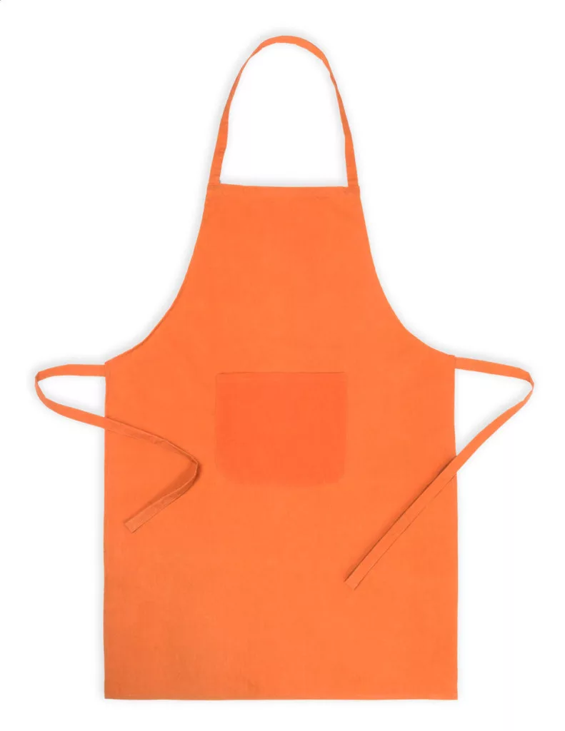 Színes kötény elülső zsebbel. 35% pamut, 65% poliészter.