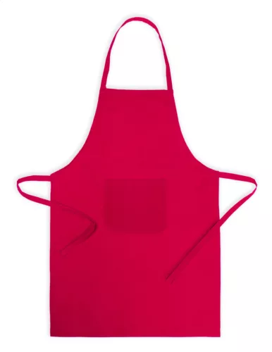 Színes kötény elülső zsebbel. 35% pamut, 65% poliészter.