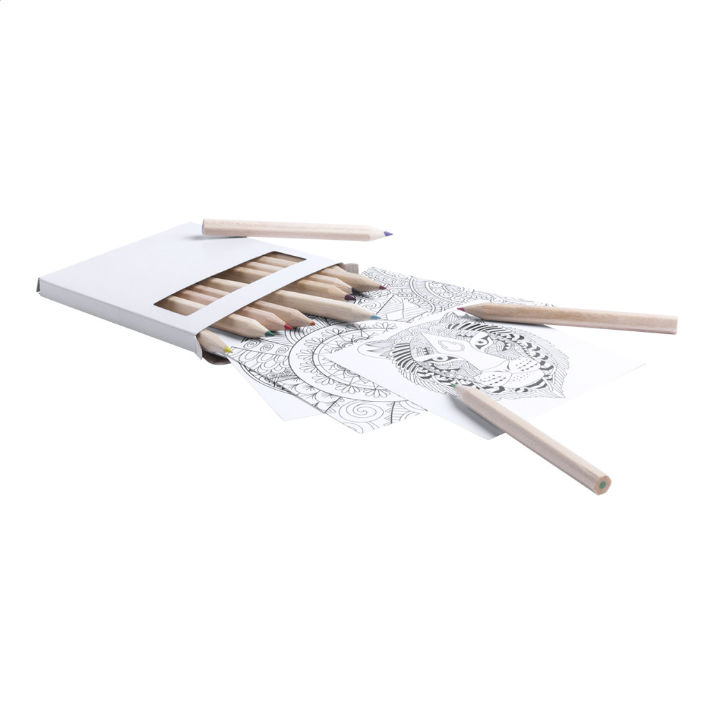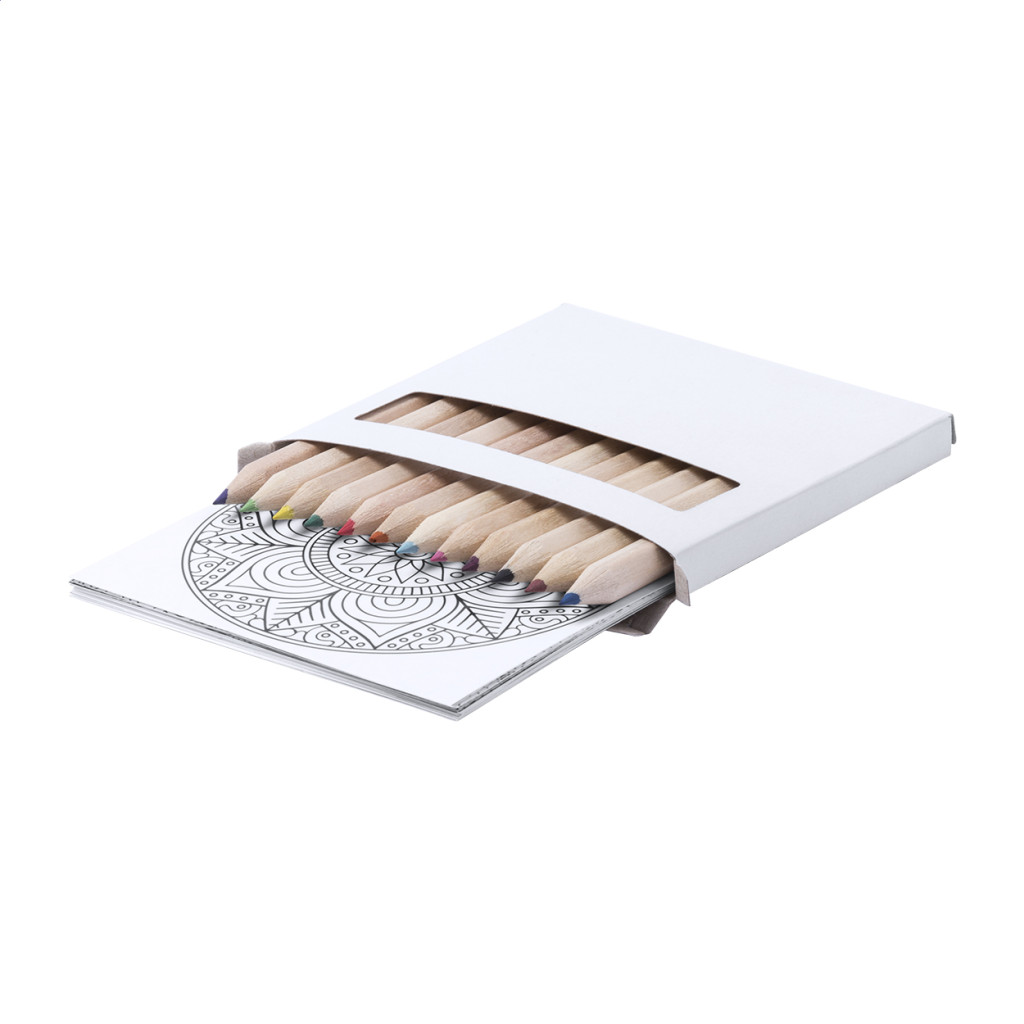 Mandala színező szett 12 színes ceruzával és 12 ív mandala dizájnnal.