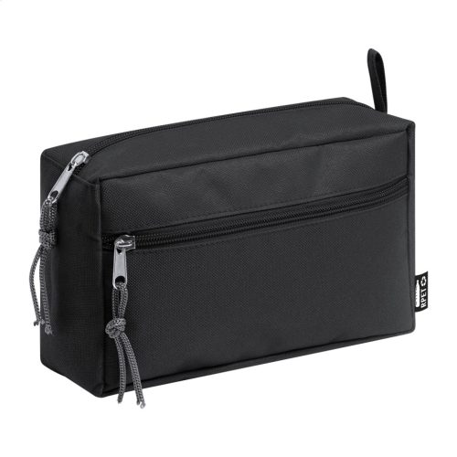 RPET kozmetikai táska 2 cipzáras rekesszel, 600D RPET poliészter. Megkülönböztető RPET címkével.