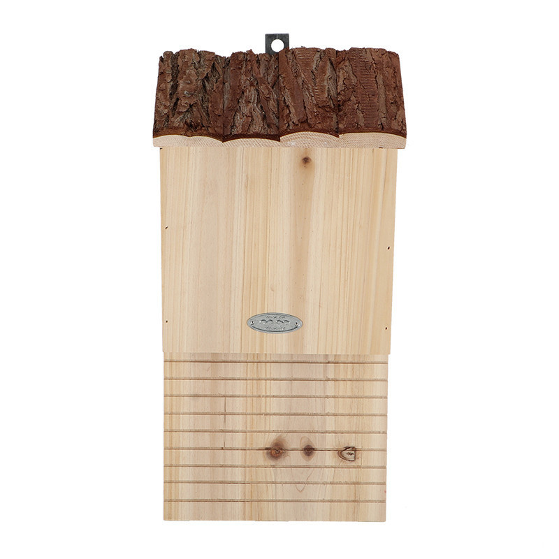 Denevérház fakéreg tetővel. Mivel a denevérek elpusztítják a szúnyogokat, és a kártevő rovarokat, ezért minden háznál hasznos lehet, ha menedéket biztosítunk számukra. Mióta a modern házaknak egyre jobb a szigetelésük, a denevéreknek is nagyobb kihívást jelent szállást találni. Ez a denevérház ideális búvóhelyet jelent számos denevérfaj számára. A ház kültéri fala megfelelő hely lehet a felrögzítésre. A denevérházat egy elzártabb helyre érdemes rakni, tehát semmiképp sem a közvetlen napfényre. 100% FSC fából készült denevérház.
