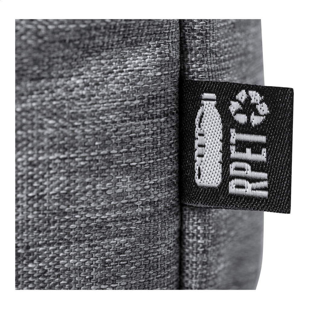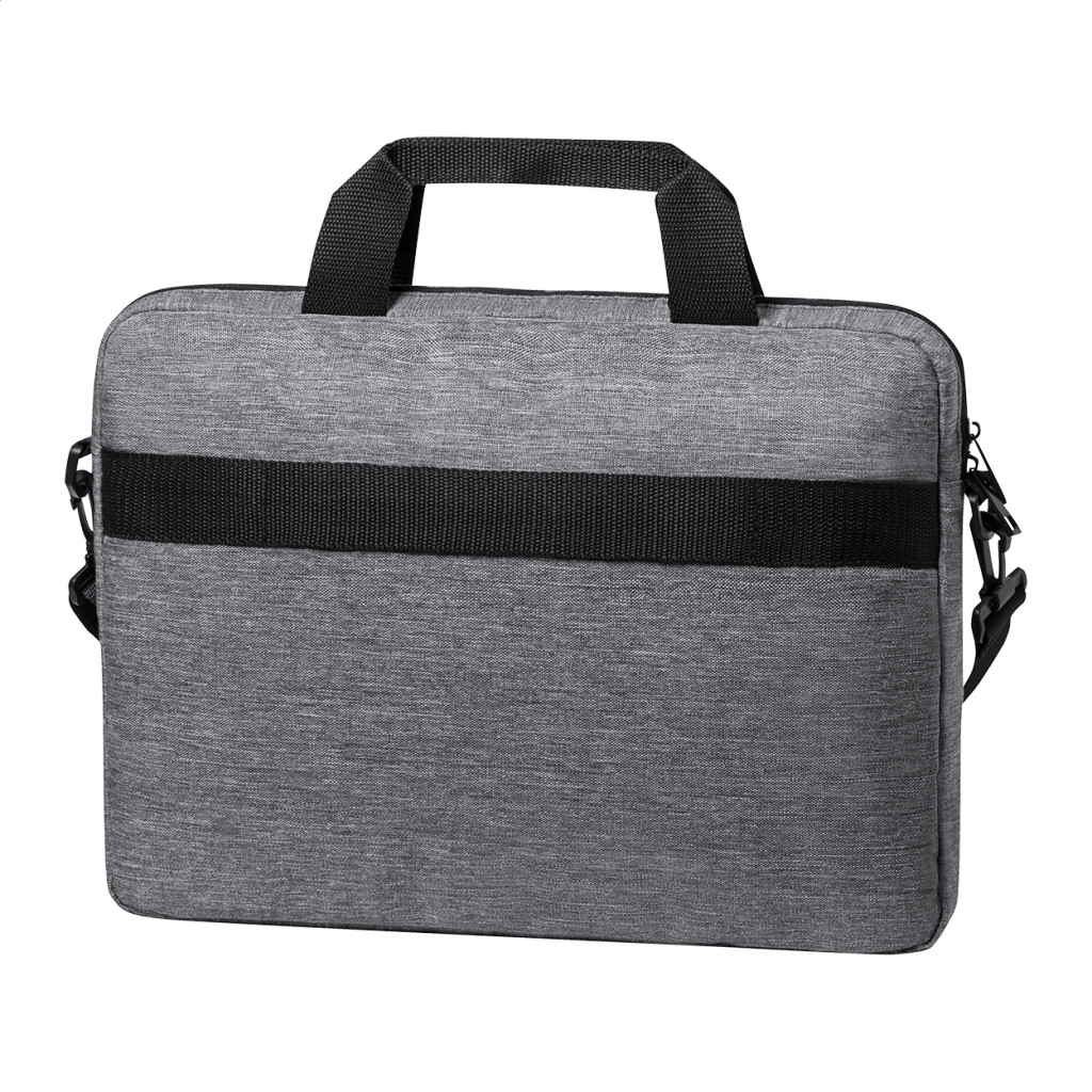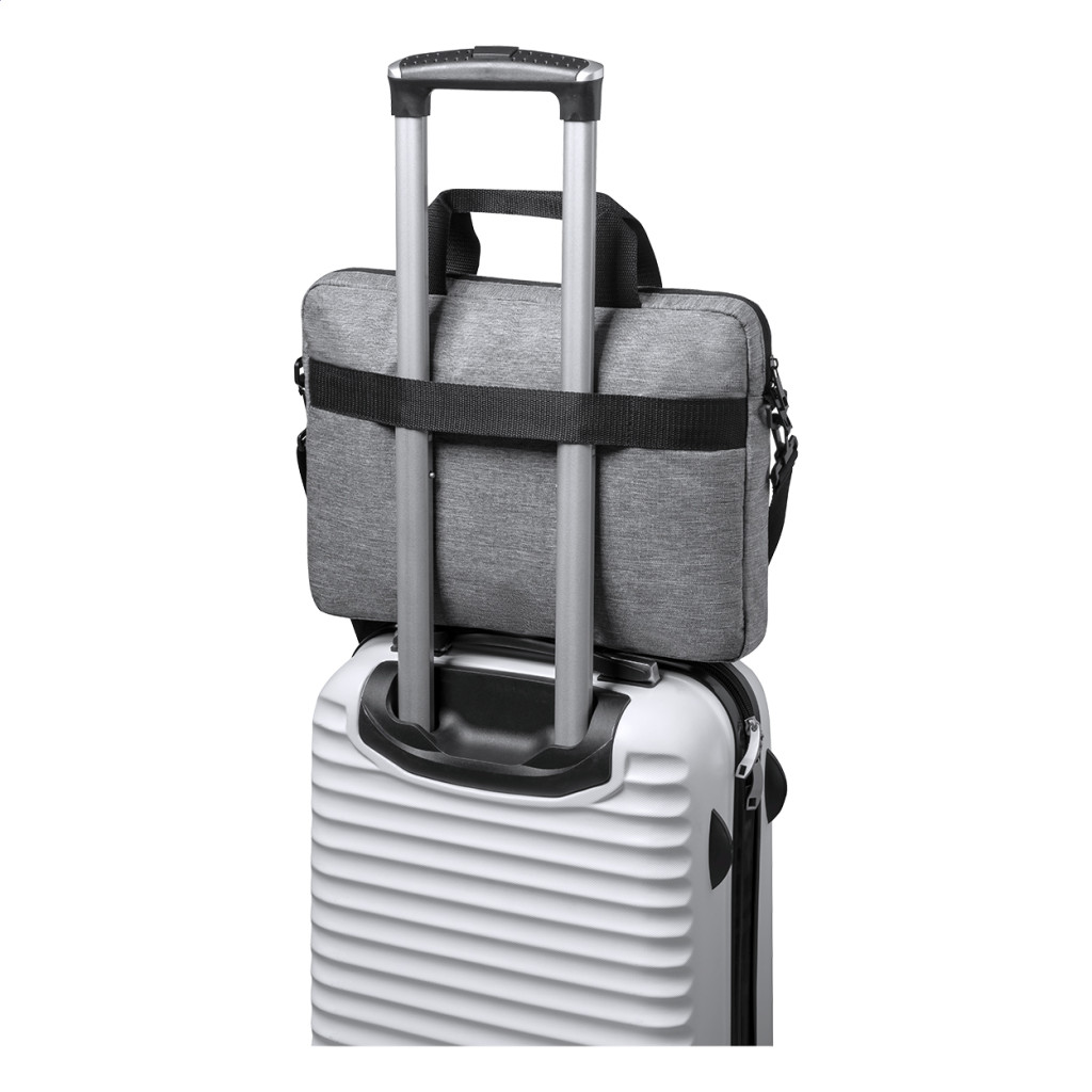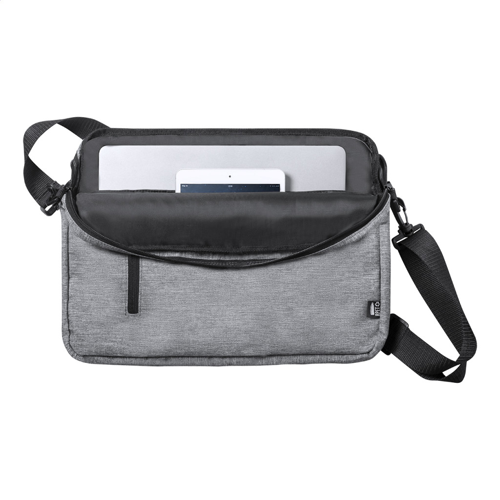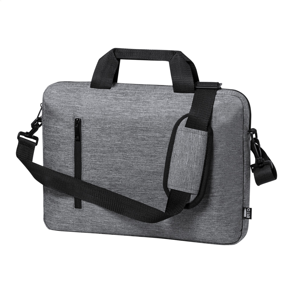 RPET, cipzáras irattáska állítható vállpánttal, pánttal bőröndre rögzítéshez és párnázott laptoptartó (15") és tablettartó (10") rekesszel. 600D RPET poliészter.