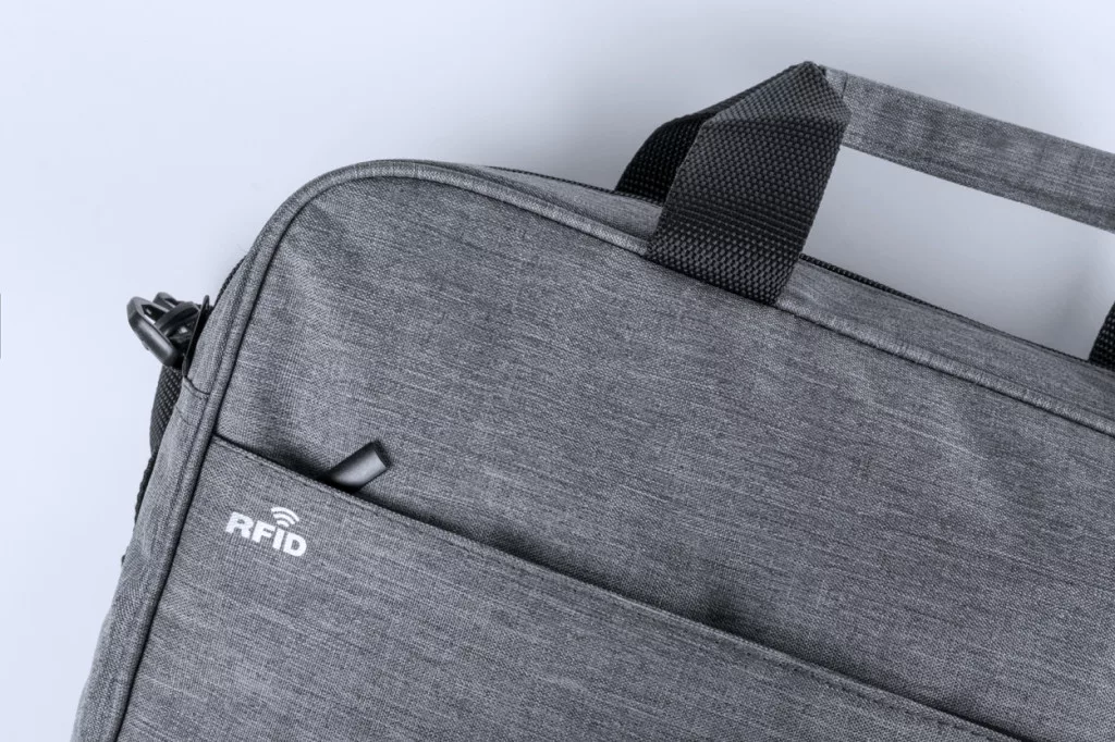 Irattáska RFID védelemmel, laptop- és tablettartó rekesszel (15" & 10"), párnázott hátrésszel és vállpántokkal.