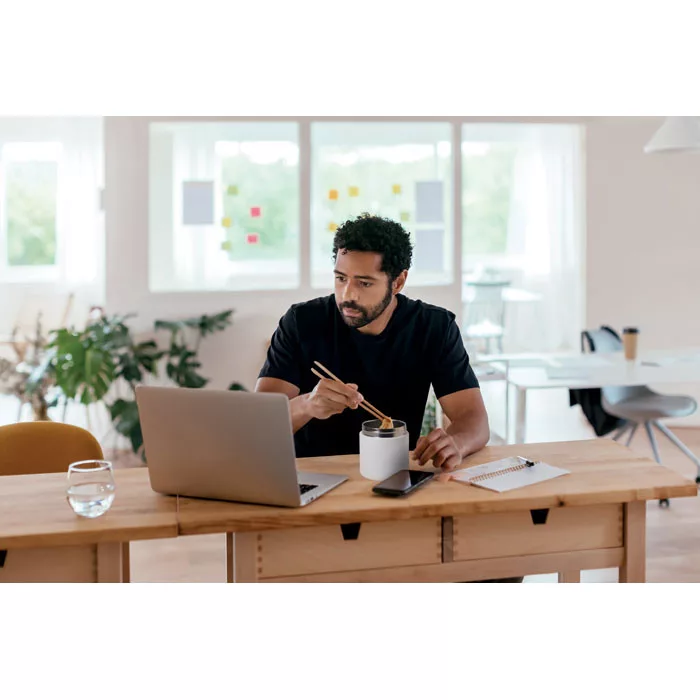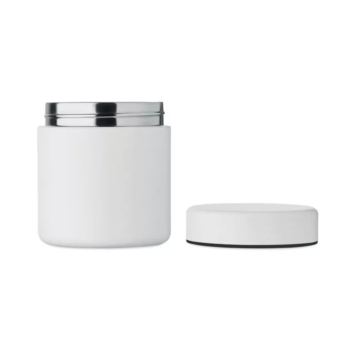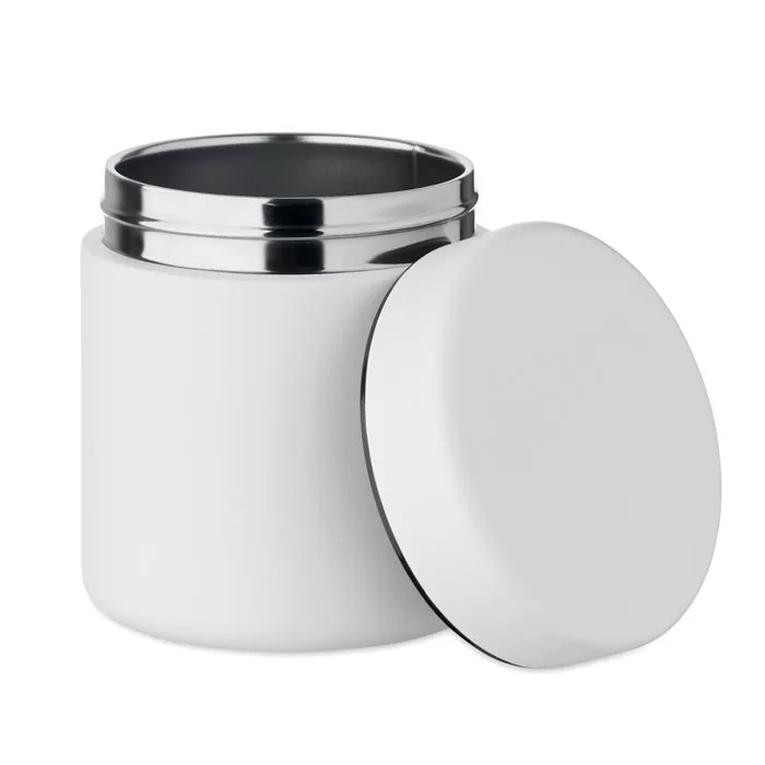 Duplafalú, szigetelt uzsonnásdoboz 90% újrahasznosított rozsdamentes acélból és 10% rozsdamentes acélból, PP fedéllel. Űrtartalom: 500 ml.