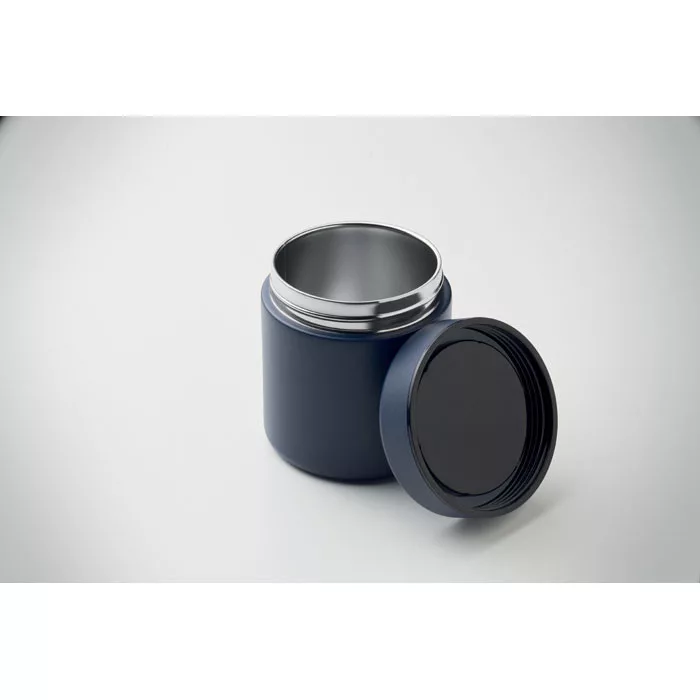 Duplafalú, szigetelt uzsonnásdoboz 90% újrahasznosított rozsdamentes acélból és 10% rozsdamentes acélból, PP fedéllel. Űrtartalom: 500 ml.