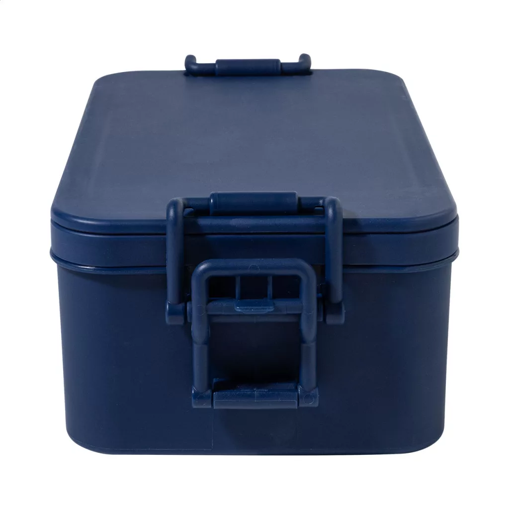 PP műanyag ételdoboz evőeszközkészlettel (villa, kanál és kés), csatos zárral és 2 rekesszel (1000 ml és 800 ml). Egymásra rakható kialakítással a kompakt tárolás érdekében.