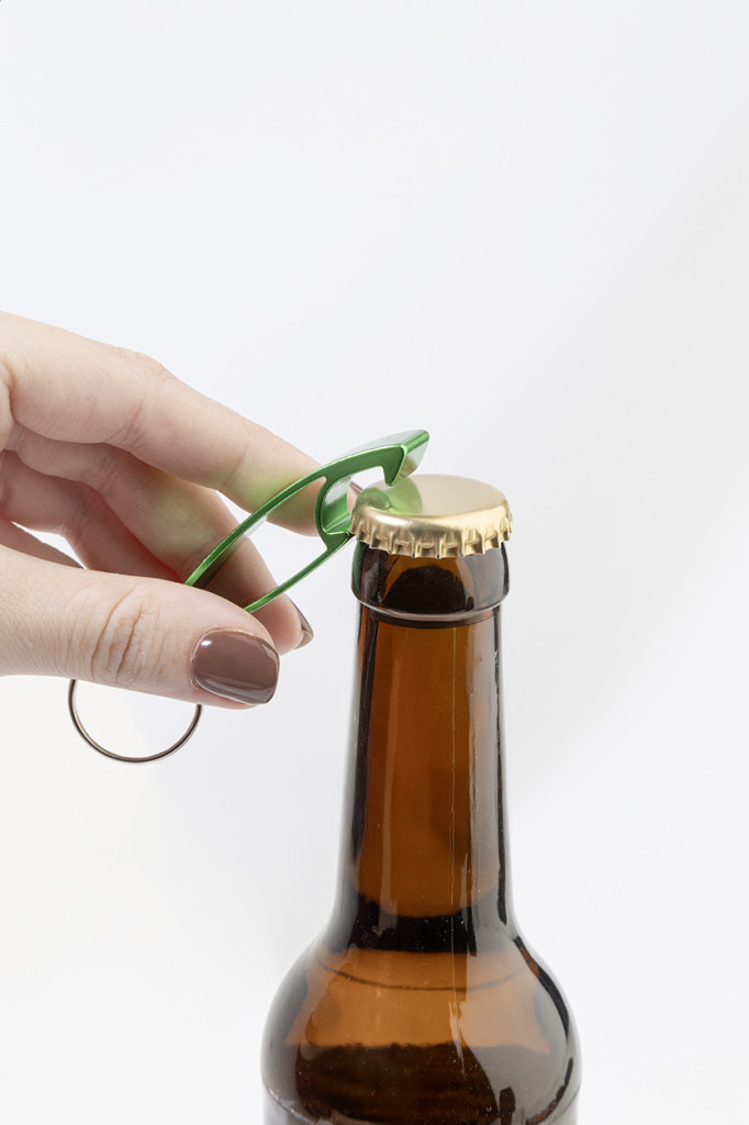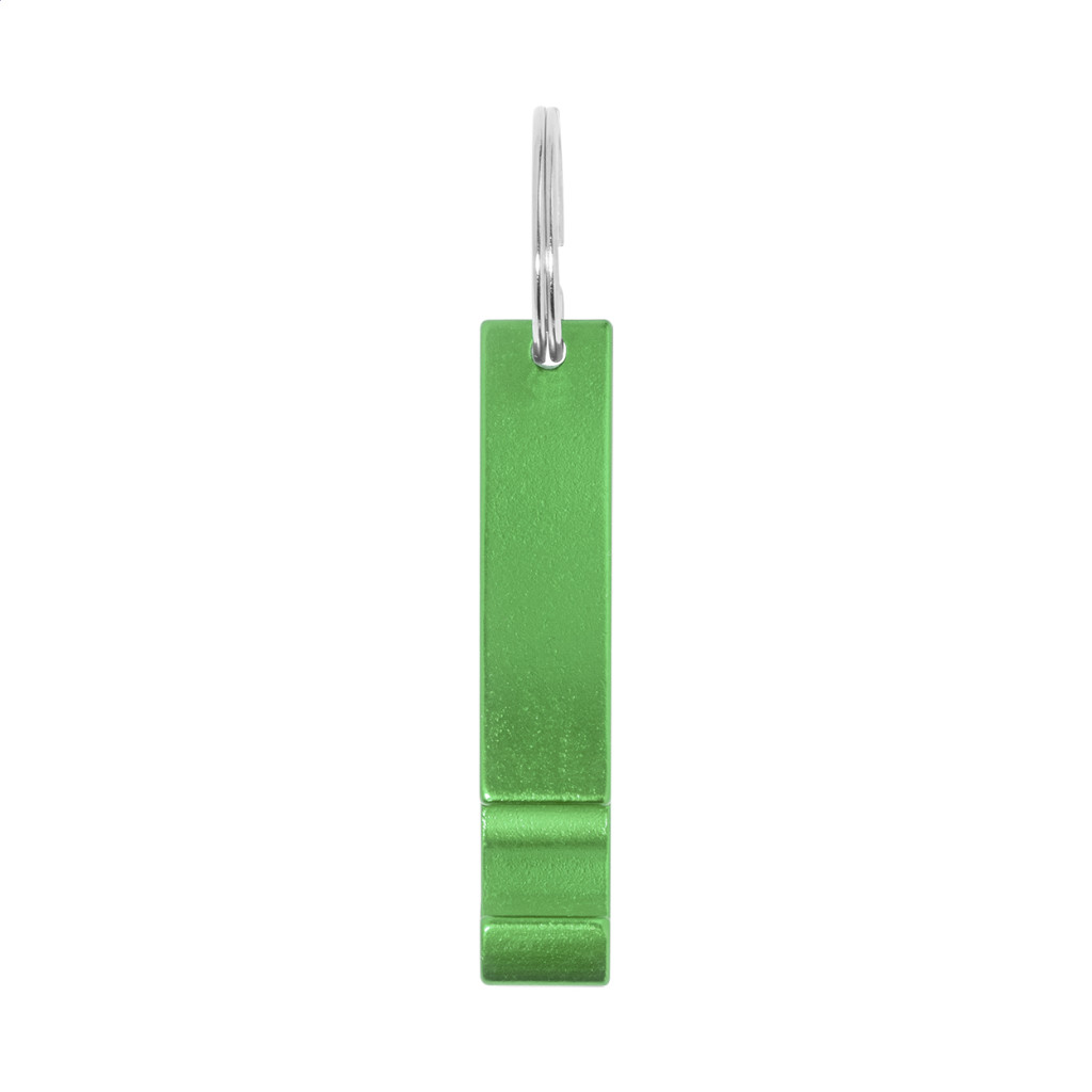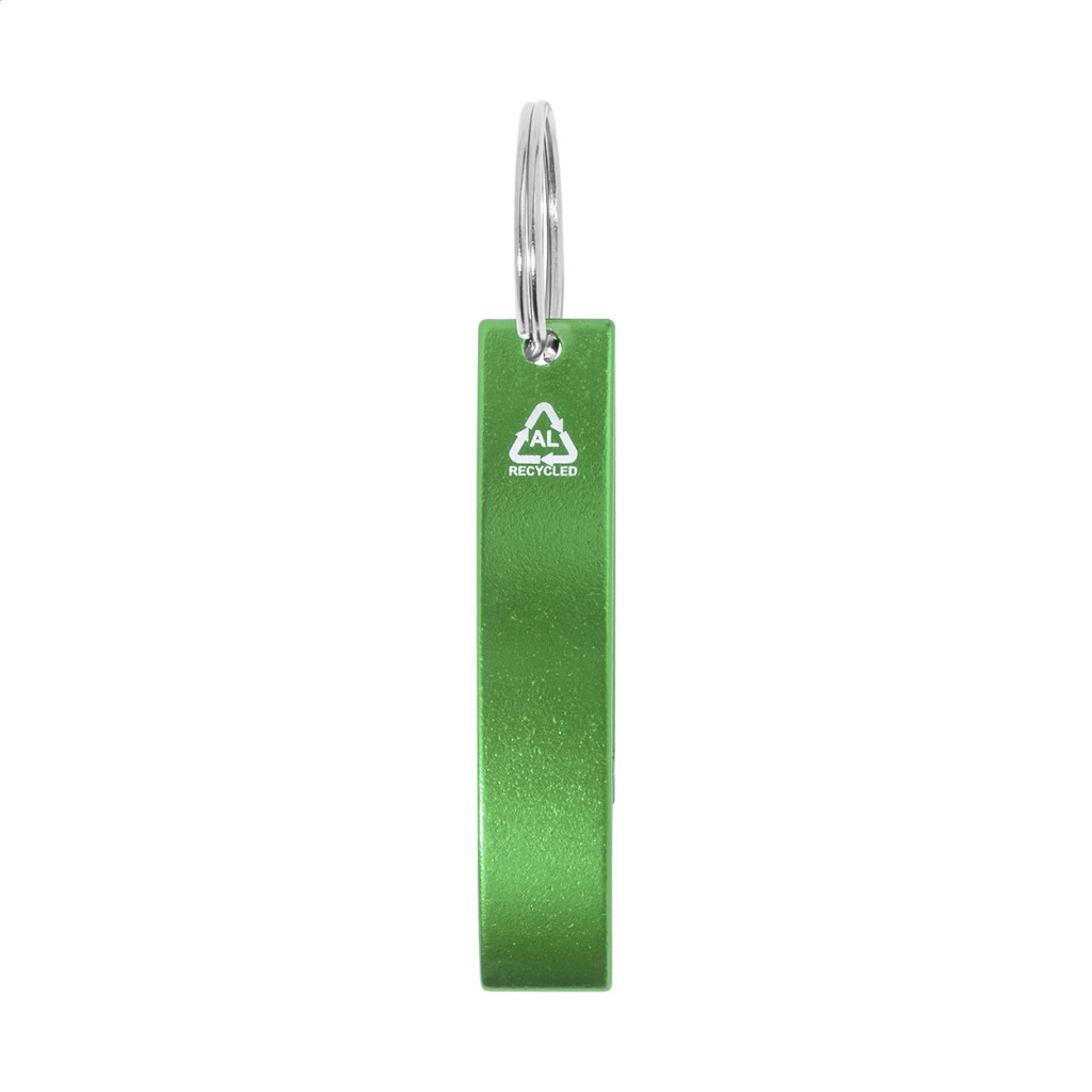 Újrahasznosított alumínium üvegnyitó fém kulcskarikával.