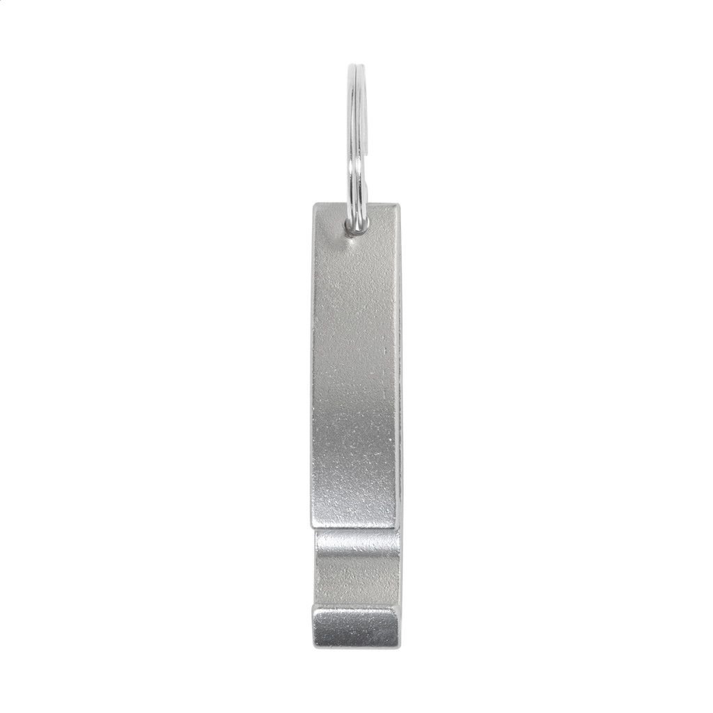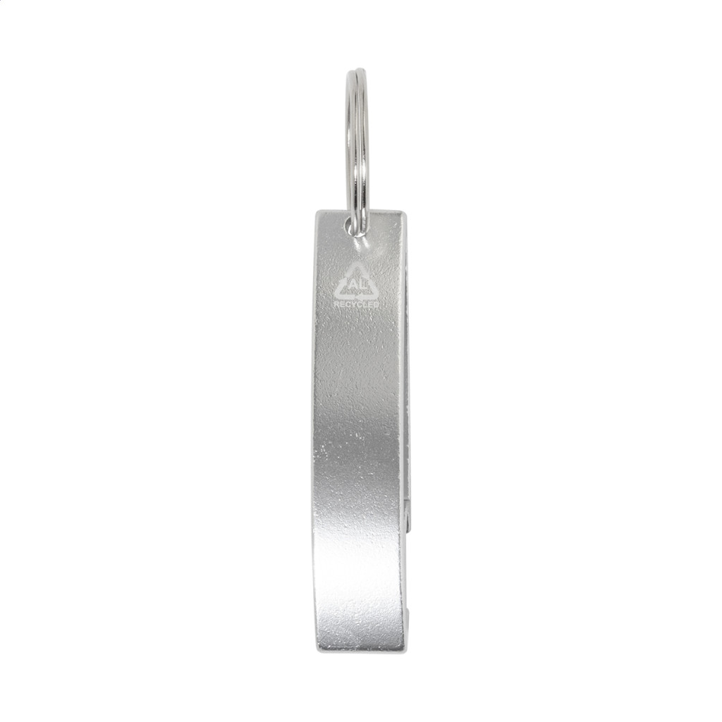 Újrahasznosított alumínium üvegnyitó fém kulcskarikával.