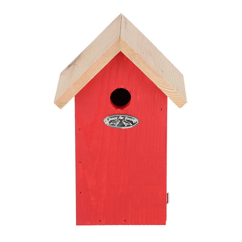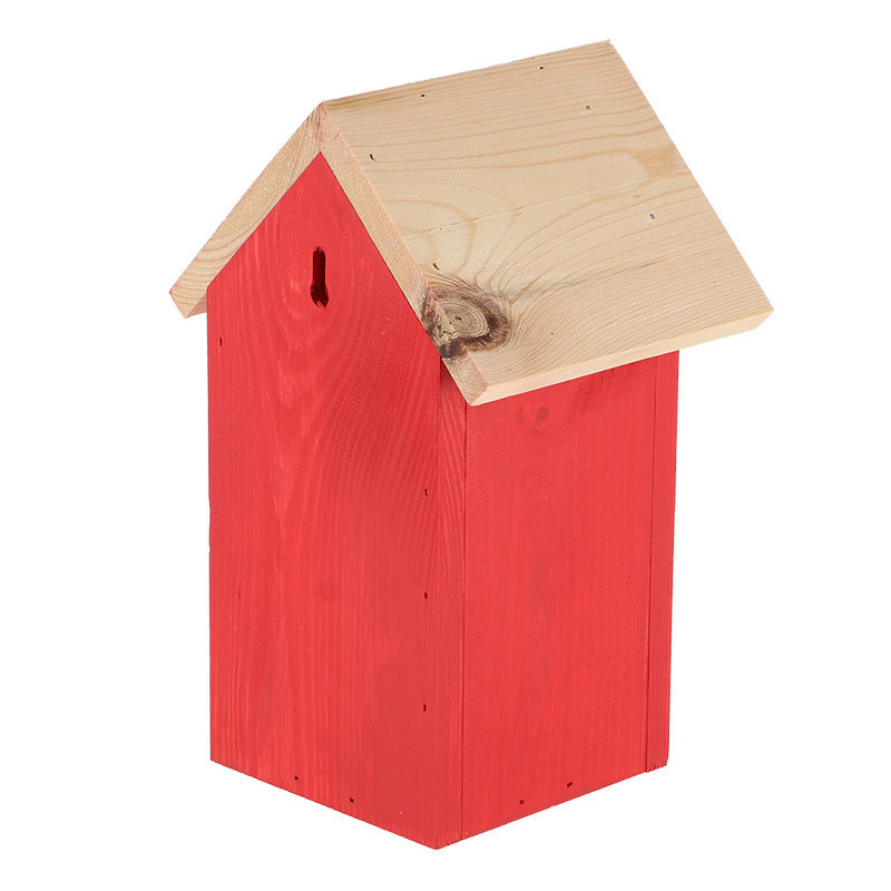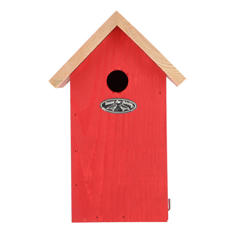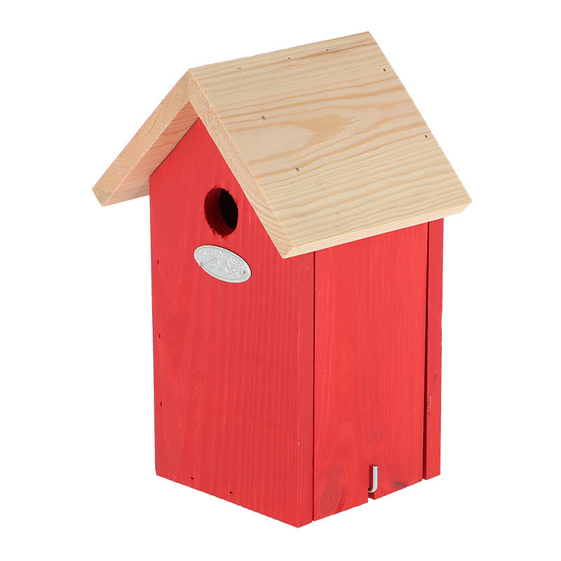 Fa madárház cinegéknek, piros színben. Egy dekoratív madárház nem hiányozhat egyetlen kertből sem. Ez a természetes anyagokból, FSC fából, készült madárház remek helyet kínál a kék cinege számára a fészkeléshez. A ház felakasztására egy csendes és kissé védett hely a legideálisabb, tehát ne közvetlenül a napra vagy az esős oldalra helyezzük. Az ősz a legoptimálisabb időszak a madárház tisztítására.