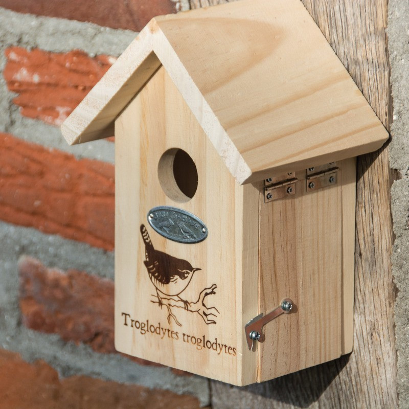 Fából készült madárház ökörszem mintával. A ház, az oldalán elhelyezett nyitható oldalsó szárny segítségével könnyen tisztítható. Esősebb időben a tető védelmet nyújt a madaraknak. Helyezzük el bárhol a kertben vagy a teraszunkon, a madarak pedig gyönyörű csicsergéssel hálálják meg a gondoskodást.