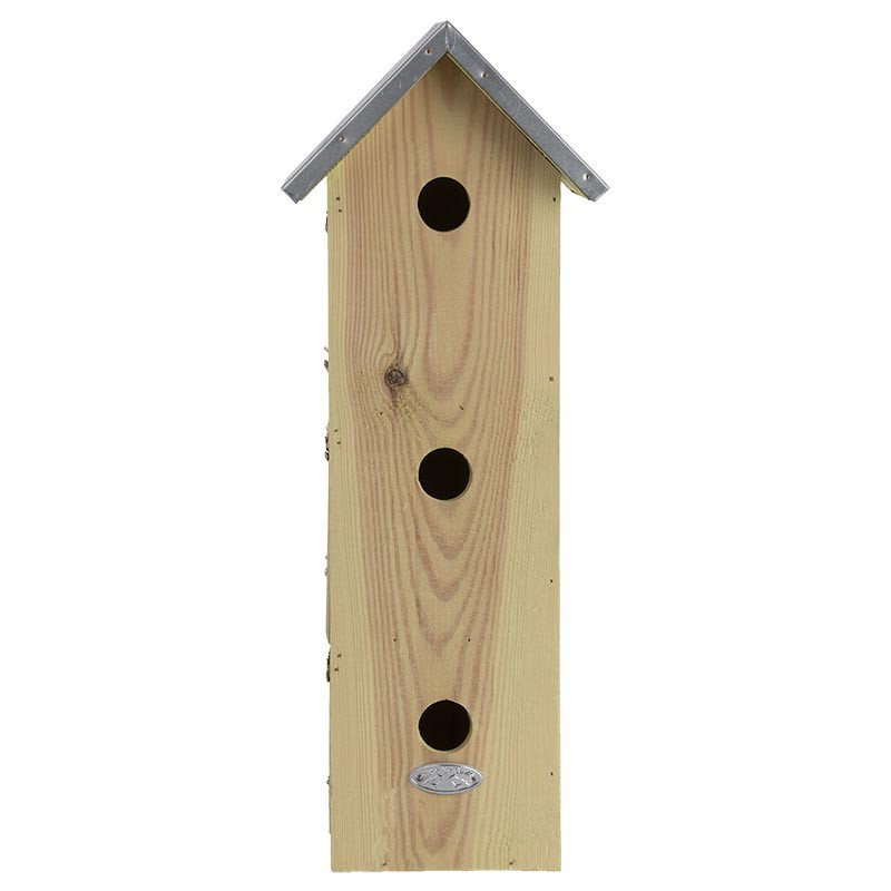 Több szintes verébház cink tetővel, amely esős időben megvédi őket. Pillanatok alatt kertünkbe vonzza a szebbnél szebb madarakat. Helyezzük el bárhol a kertben vagy a teraszunkon, a madarak pedig gyönyörű csicsergéssel hálálják meg a gondoskodást. Válaszd felhelyezéshez fabarát, alumínium szögünket, mely nem károsítja a fát.