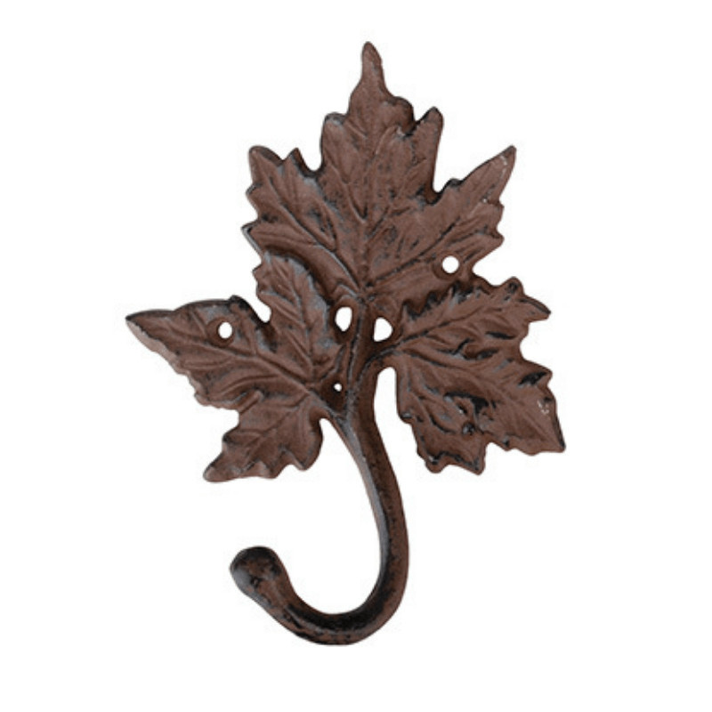 Falevél mintás öntöttvas akasztó, 19 cm, A