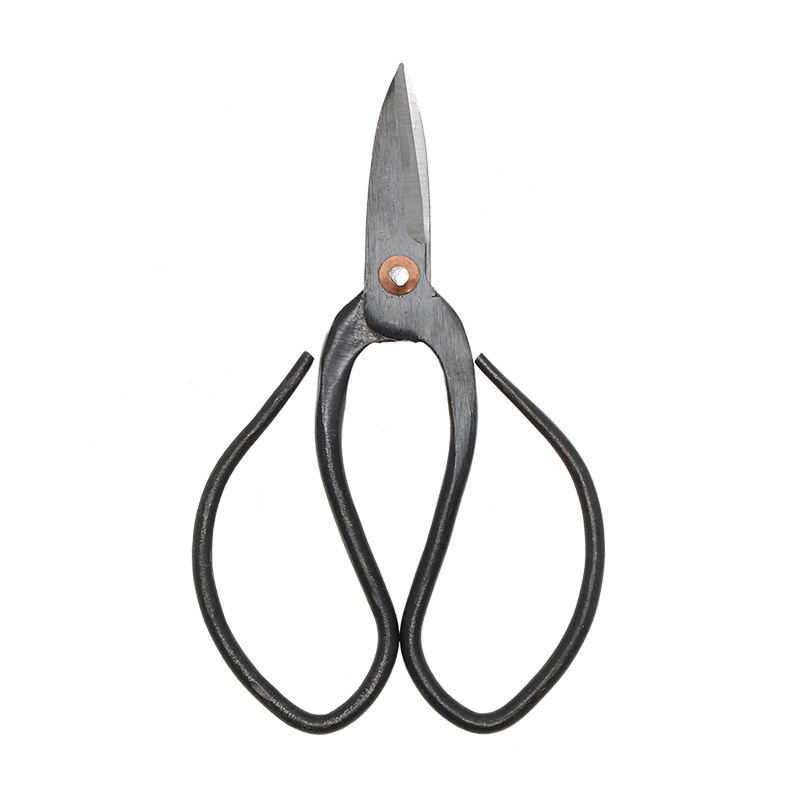 Fekete acél bonsai olló, 11 cm. A kézreálló metszőolló tökéletesen alkalmas a kültéren vagy beltéren nevelt bonsai növények precíz, aprólékos metszésére, formázására, a gyökerek alakítására. Az éles pengék hibátlan, egyenletes metszési felületet hoznak létre, ami elengedhetetlen a növény egészsége és regenerálódása miatt. A bonsai olló acél alapanyagának köszönhetően hosszú évekig lesz segítségünkre kis növényünk nevelése során. Ügyeljünk a pengék tisztítására és rendszeres élezésére!