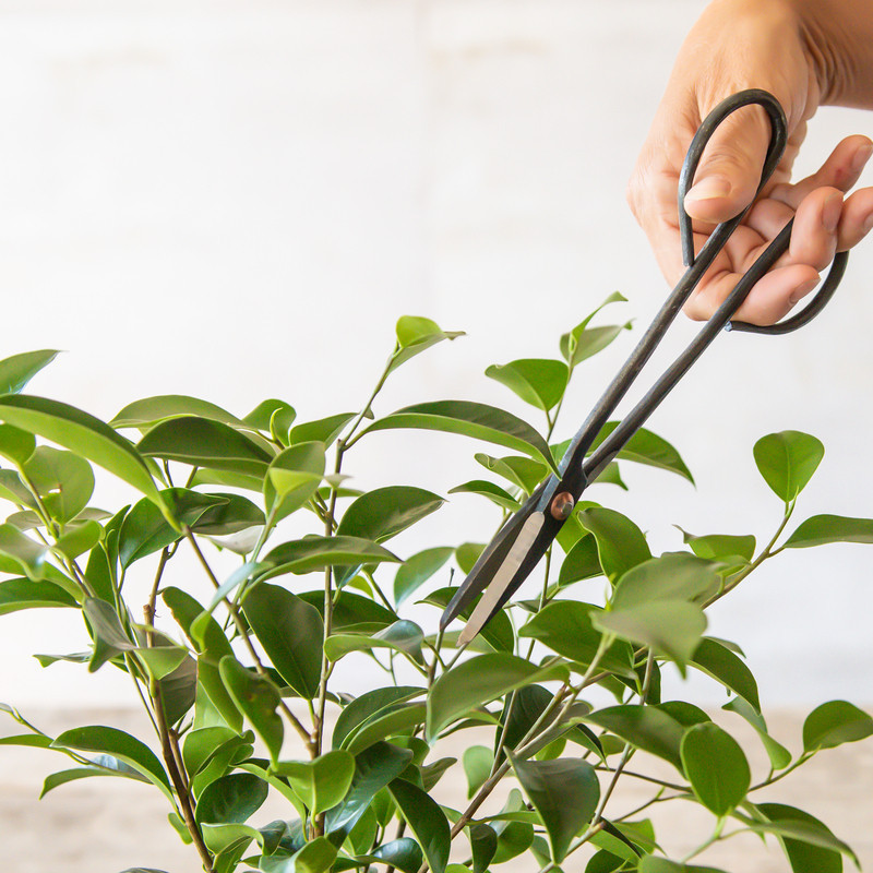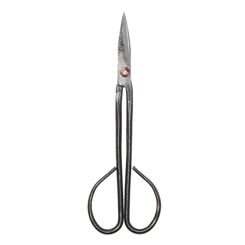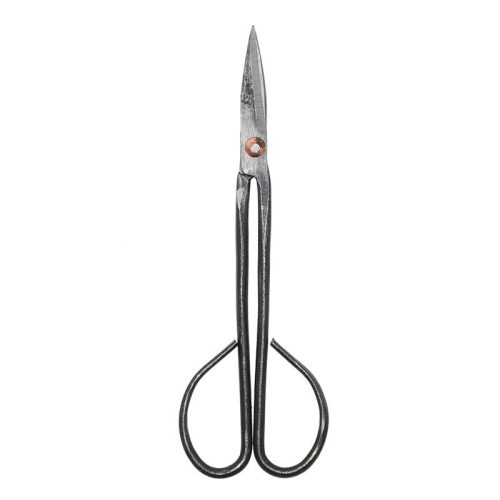Fekete acél bonsai olló, 20 cm. A kényelmes fogású metszőolló tökéletesen alkalmas a kültéren vagy beltéren nevelt bonsai növények aprólékos metszésére, formázására, különösen a nehezen elérhető, szűkebb helyeken fogjuk hasznát venni. Az éles pengék hibátlan, egyenletes metszési felületet hoznak létre, ami elengedhetetlen a növény regenerálódása és egészsége szempontjából. A bonsai olló acél alapanyagának köszönhetően hosszú évekig lesz segítségünkre miniatűr növényünk nevelése során. Ügyeljünk a pengék tisztítására és rendszeres élezésére!