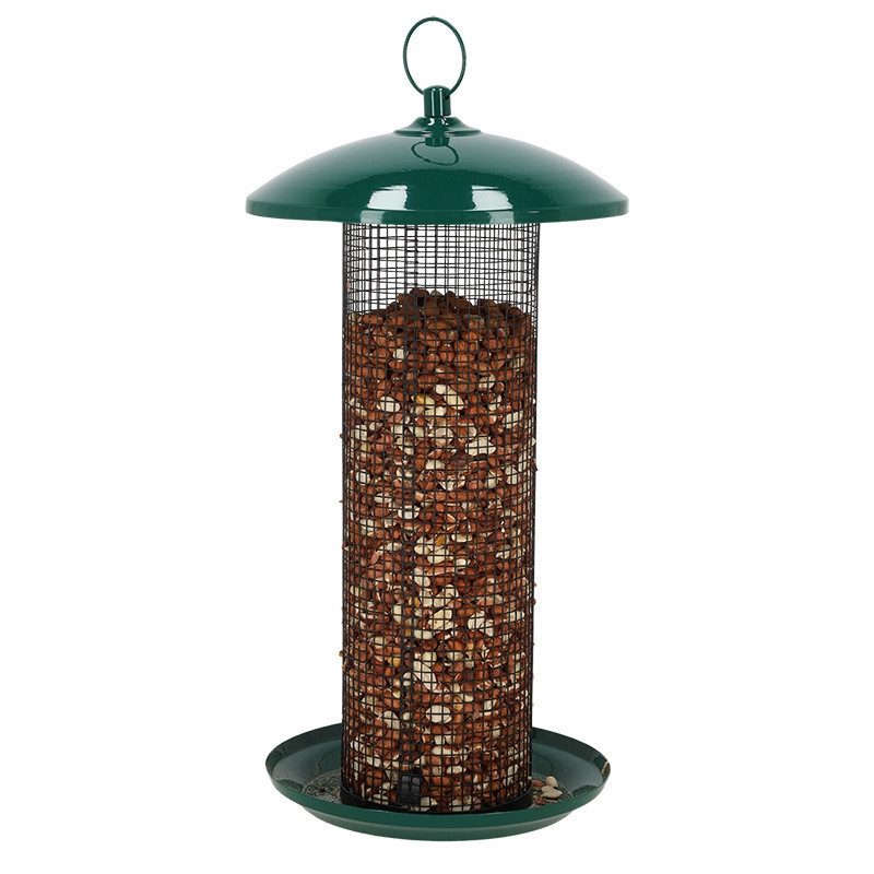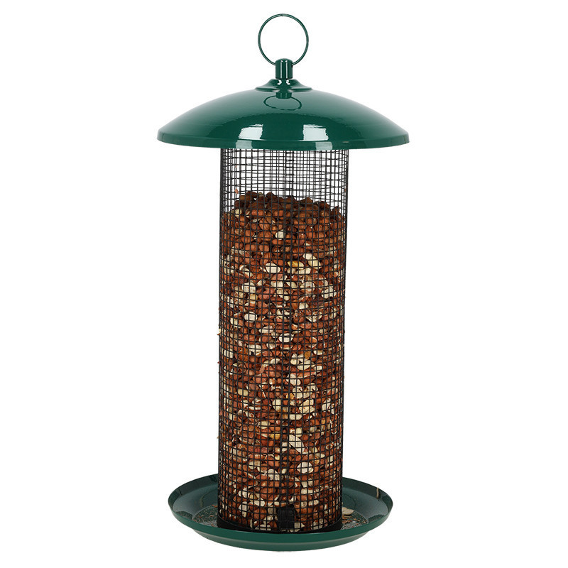 Felakasztható mogyoróadagolós madáretető. Rendkívül nagy kapacitással rendelkezik, hiszen egyszerre 2,5 kilogramm mogyoróval tölthető fel. A tetején lévő karikán keresztül könnyen felakasztható, az etető körül pedig a kismadarak könnyen megkapaszkodhatnak. Kialakításának köszönhetően a madáreleség szárazon marad és bármikor újratölthető. Az alsó tálca segít összegyűjteni a lehullott magokat, melyet a madáretető alján lévő nyílás segítségével pótolhatunk. A dekoratív madáretető nemcsak a dalos kismadarakat vonzza a ház köré, de a kert különleges dísze is lehet. A termék a madáreleséget nem tartalmazza.