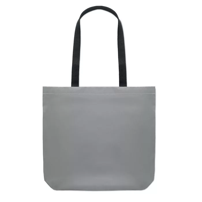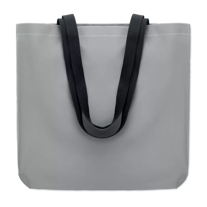 Magas fényvisszaverő képességű 190D poliészter bevásárlótáska hosszú fülekkel.