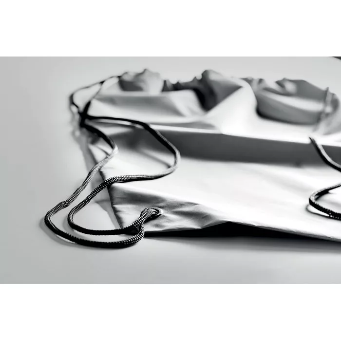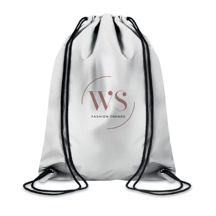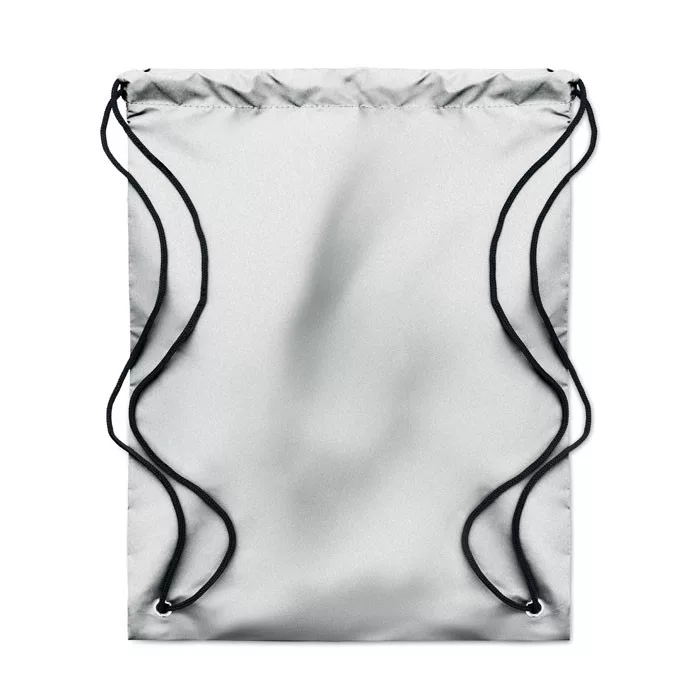 Magas fényvisszaverő képességű poliészterből készült zsinóros tornazsák.