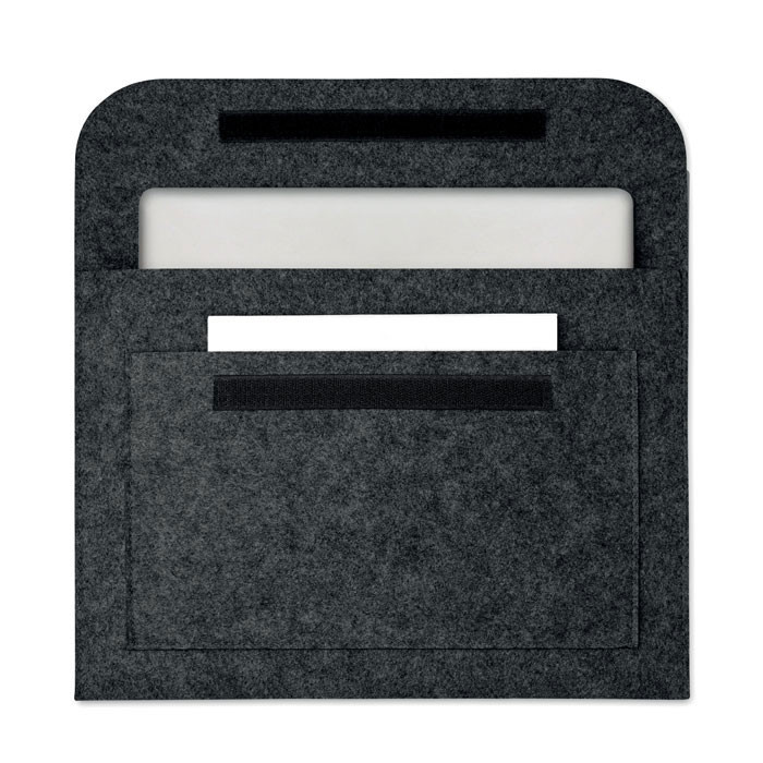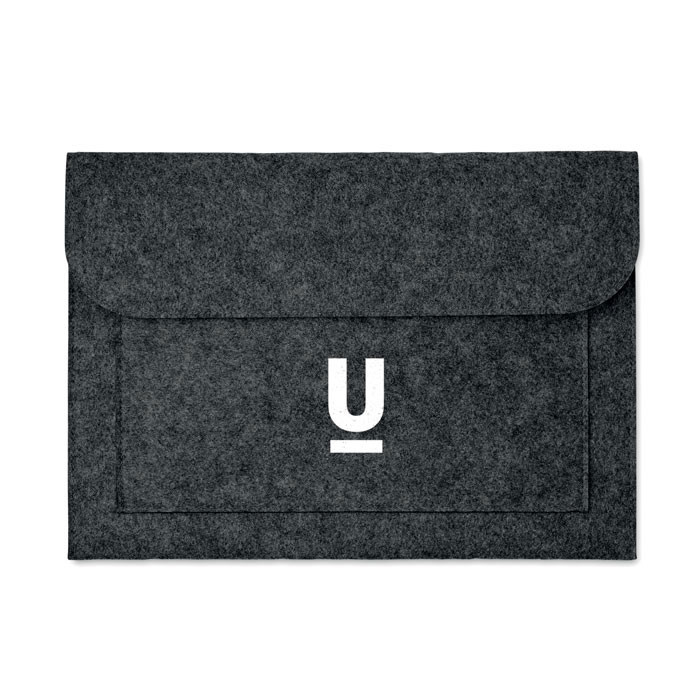 15 colos laptop táska / irattáska. 2 mm vastag RPET szintetikus filc anyagból, első zsebbel, tépőzáras záródással.