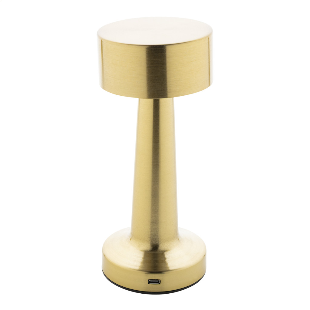 Arany színű fém asztali lámpa 24 LED-del, állítható fényerővel és 800 mAh-s USB akkumulátorral. Meleg, természetes és hideg fénymódokkal. USB töltőkábellel.