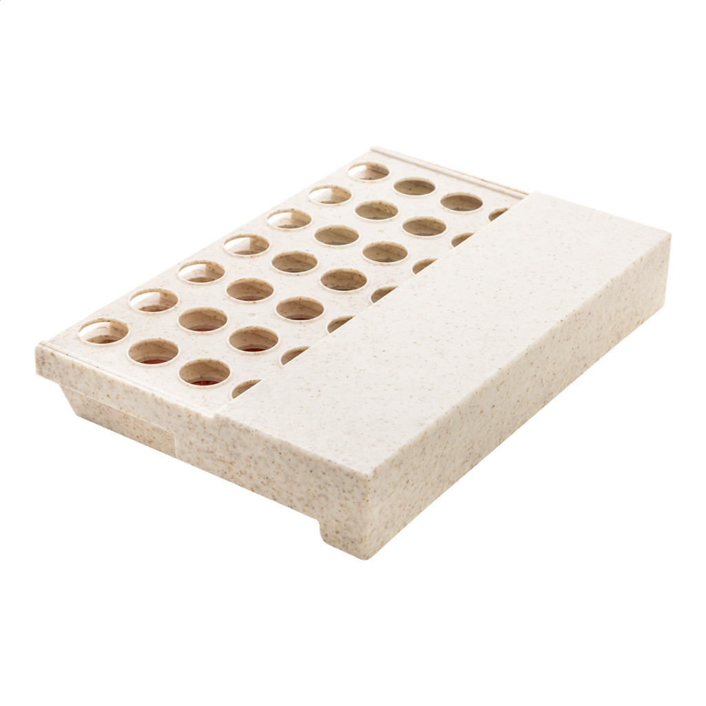 Ökológiai búzaszalma műanyag társasjáték, összecsukható függőleges táblával és 42 zsetonnal. A játék során a játékosok felváltva dobnak jelzőket a táblára, hogy négy zsetont egymás után rendezzenek.