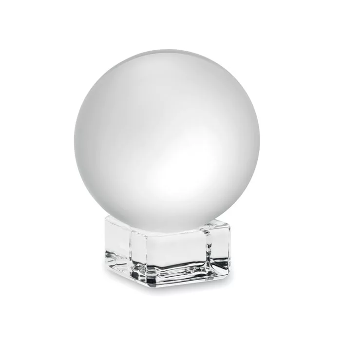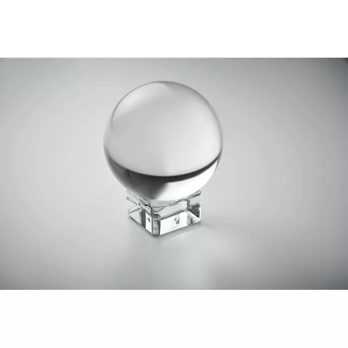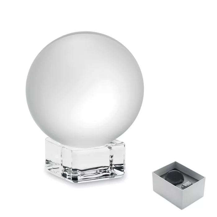 6 cm átmérőjű üveggolyó fotózáshoz, üveg talpon, bélelt, papír dobozban.